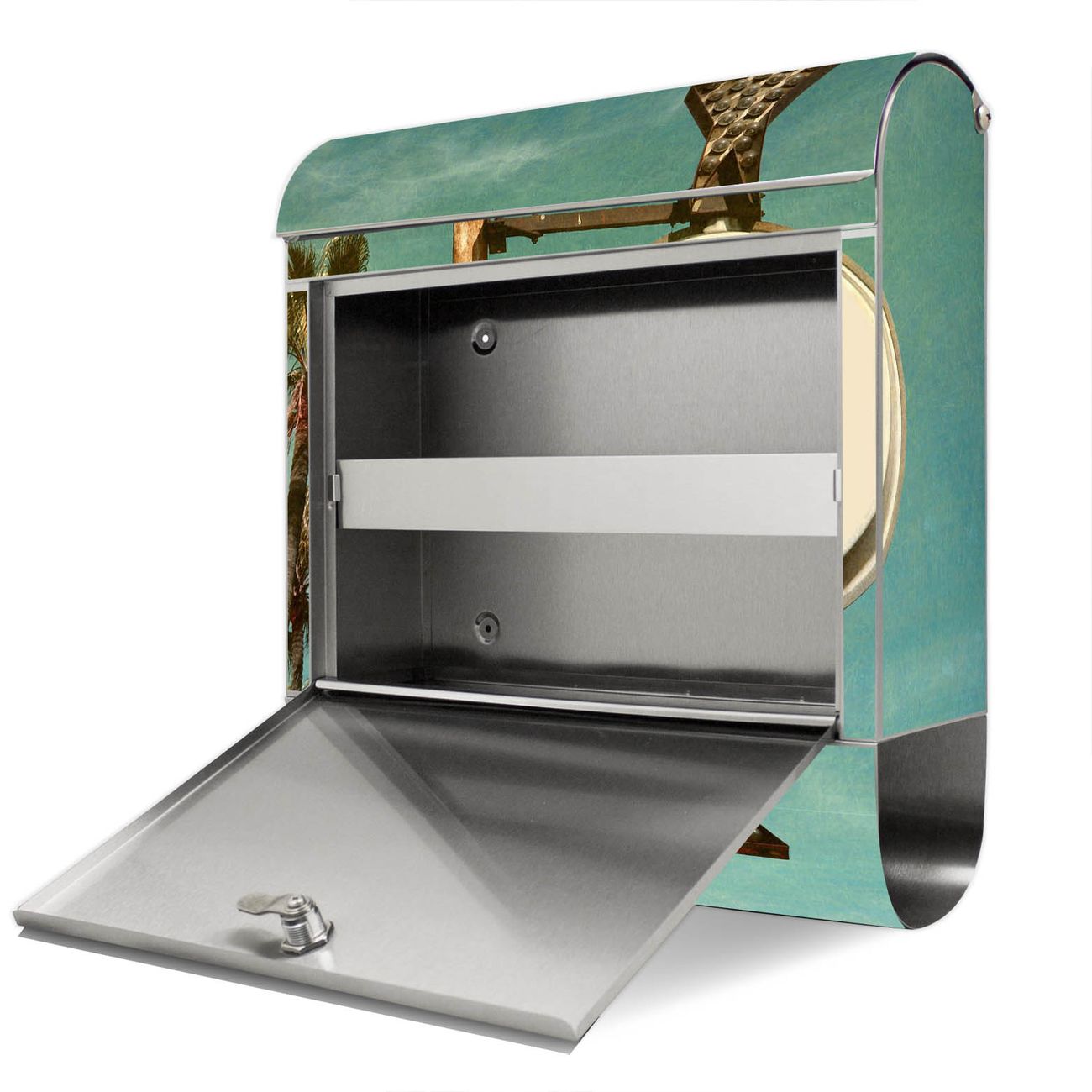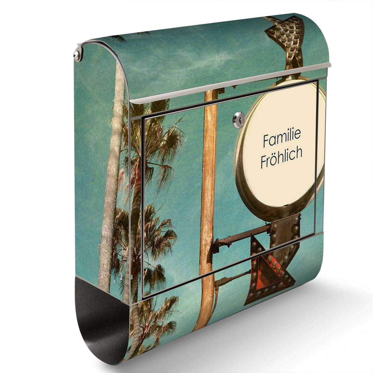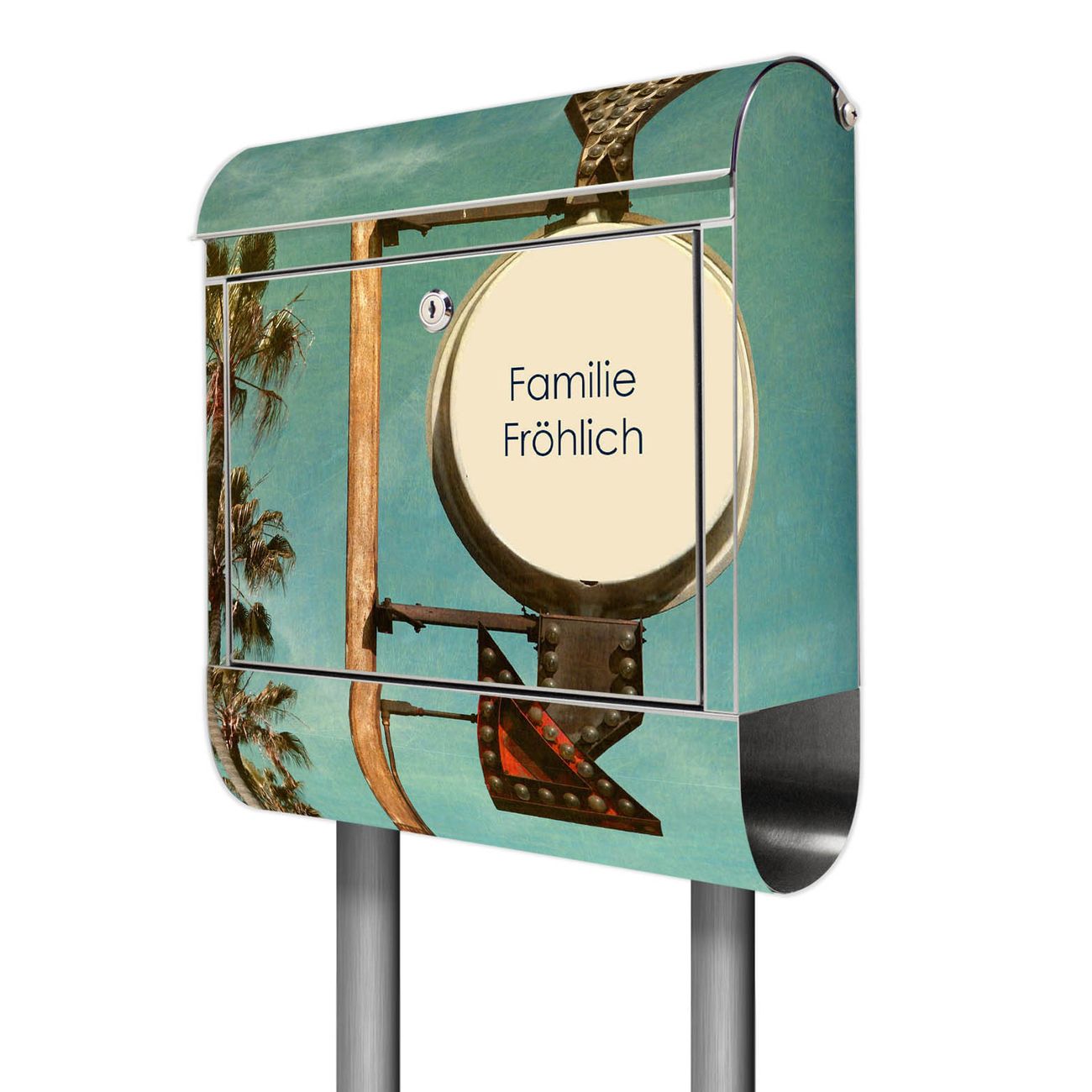 Der Motivstandbriefkasten hat ein sehr ansprechendes und ausgefallenes Design, damit entlocken Sie Ihren Nachbarn und dem Postboten ein Lächeln. Heben Sie Sich ab von der tristen grauen Masse, ohne auf Funktionalität zu verzichten. Der Briefkasten besteht aus hochwertigem 18/0 Edelstahl und die Wetter- und UV-resistenten Folie mit Surf Beach Motiv ist zusätzlich mit einem Schutzlaminat überzogen. Der Standbriefkasten wird mit Montagematerial und zwei Schlüsseln geliefert.
