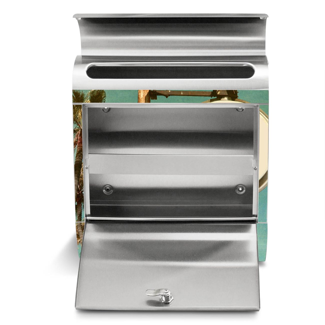 Der banjado Edelstahl Standbriefkasten mit Motiv Surf Beach und eigenem Wunschtext bietet Ihnen mit seinem Fassungsvermögen genügend Platz auch für große A4 Sendungen. Das integrierte Zeitungsfach eignet sich hervorragend, um unkompliziert die Tageszeitung zu fassen.