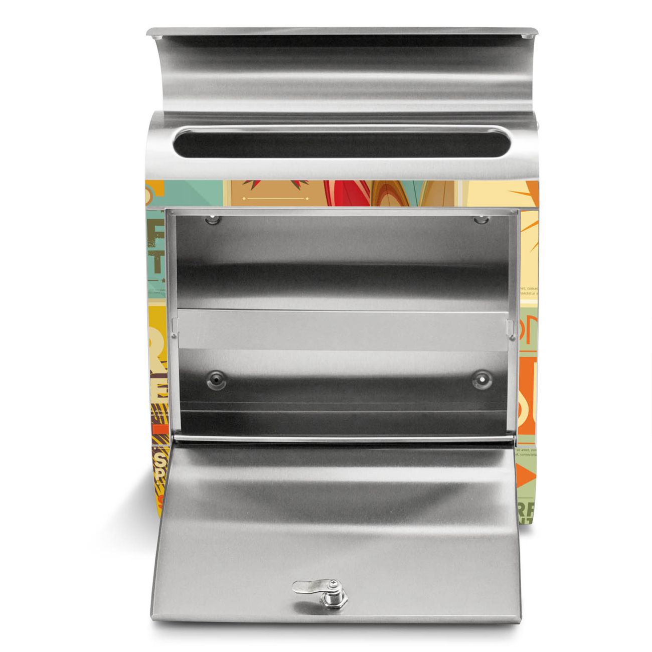 Der Motivstandbriefkasten hat ein sehr ansprechendes und ausgefallenes Design, damit entlocken Sie Ihren Nachbarn und dem Postboten ein Lächeln. Heben Sie Sich ab von der tristen grauen Masse, ohne auf Funktionalität zu verzichten. Der Briefkasten besteht aus hochwertigem 18/0 Edelstahl und die Wetter- und UV-resistenten Folie mit Surf Point Motiv ist zusätzlich mit einem Schutzlaminat überzogen. Der Standbriefkasten wird mit Montagematerial und zwei Schlüsseln geliefert.