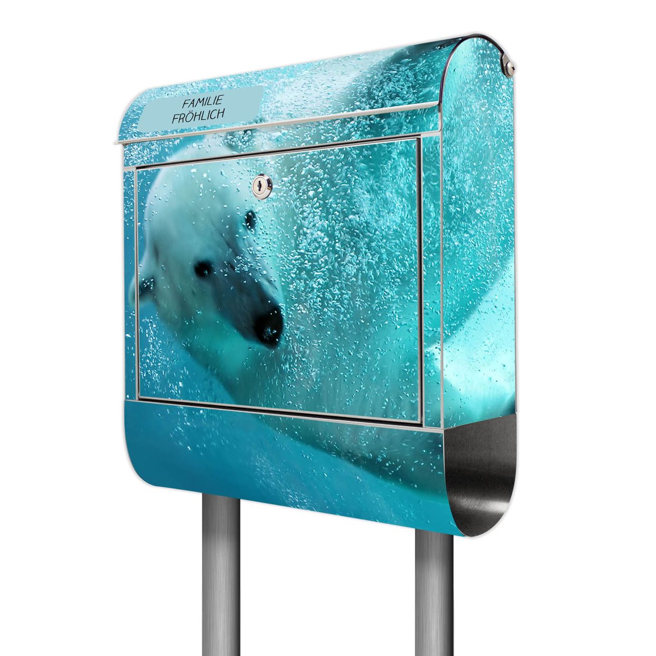 Standbriefkasten Edelstahl Tauchender Eisbär
