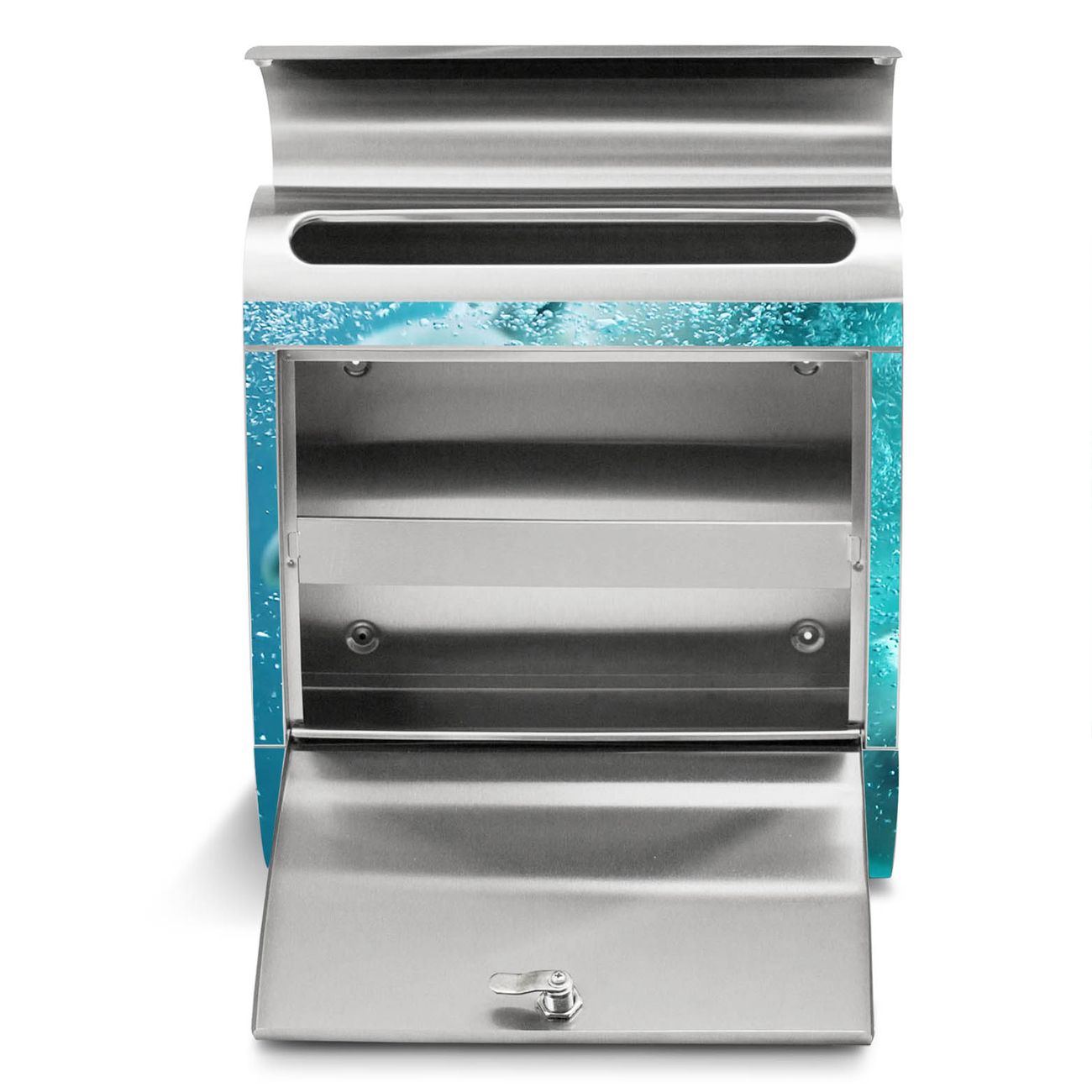 Der banjado Edelstahl Standbriefkasten mit Motiv Tauchender Eisbär und eigenem Wunschtext bietet Ihnen mit seinem Fassungsvermögen genügend Platz auch für große A4 Sendungen. Das integrierte Zeitungsfach eignet sich hervorragend, um unkompliziert die Tageszeitung zu fassen.