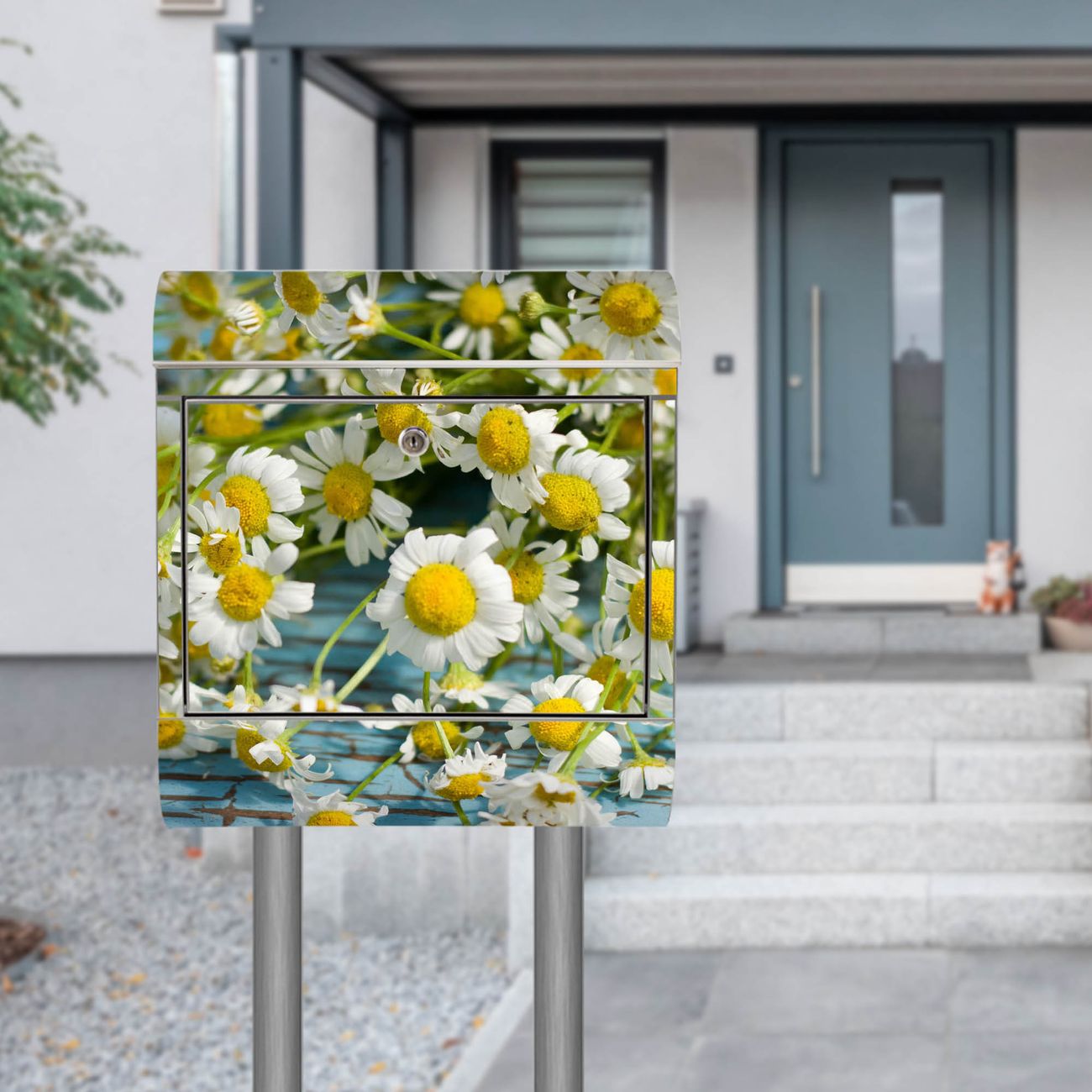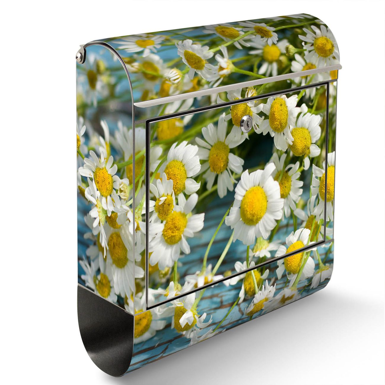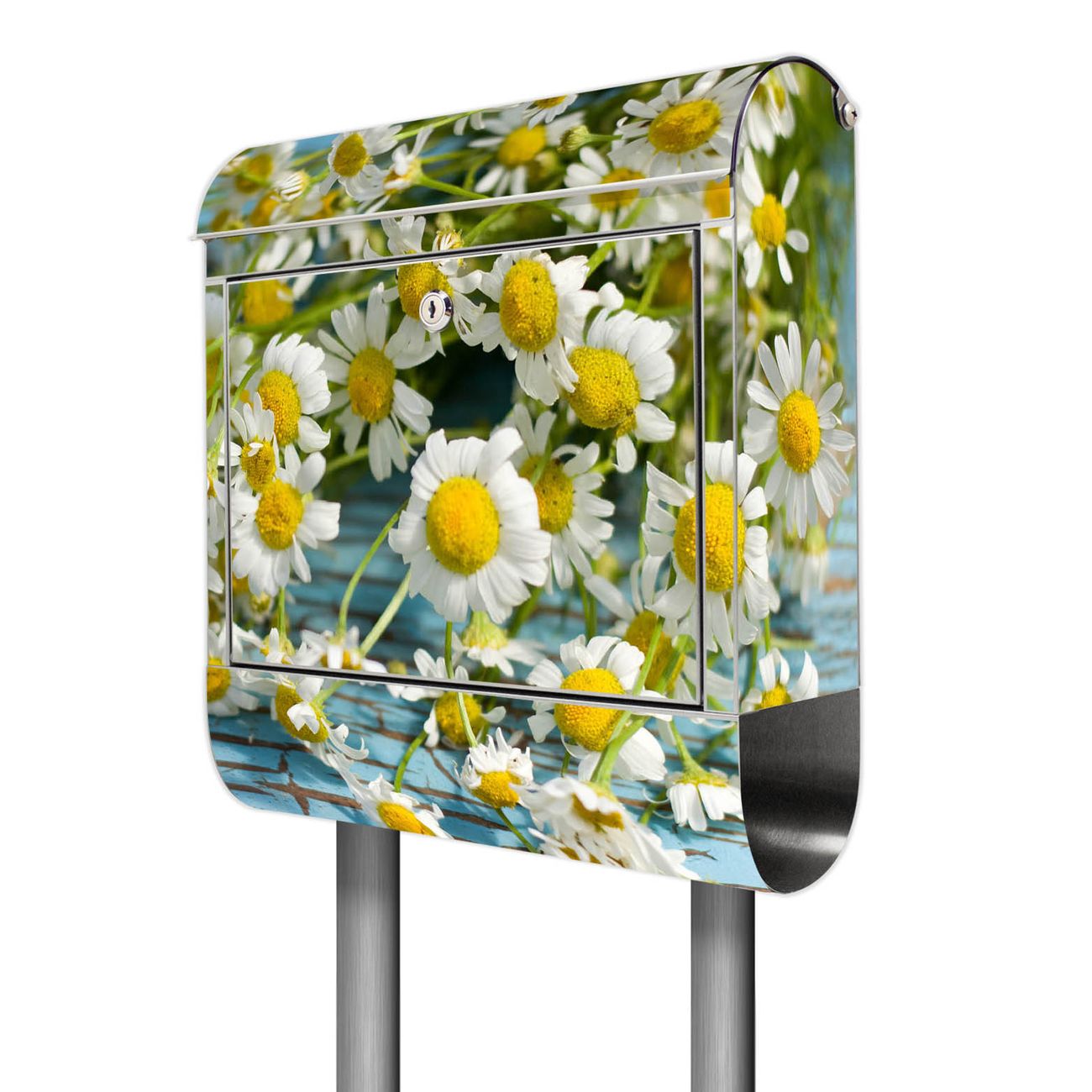 Der Motivstandbriefkasten hat ein sehr ansprechendes und ausgefallenes Design, damit entlocken Sie Ihren Nachbarn und dem Postboten ein Lächeln. Heben Sie Sich ab von der tristen grauen Masse, ohne auf Funktionalität zu verzichten. Der Briefkasten besteht aus hochwertigem 18/0 Edelstahl und die Wetter- und UV-resistenten Folie mit Tausendschön Motiv ist zusätzlich mit einem Schutzlaminat überzogen. Der Standbriefkasten wird mit Montagematerial und zwei Schlüsseln geliefert.