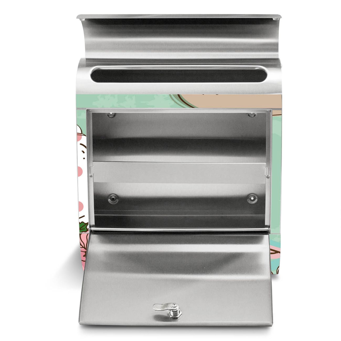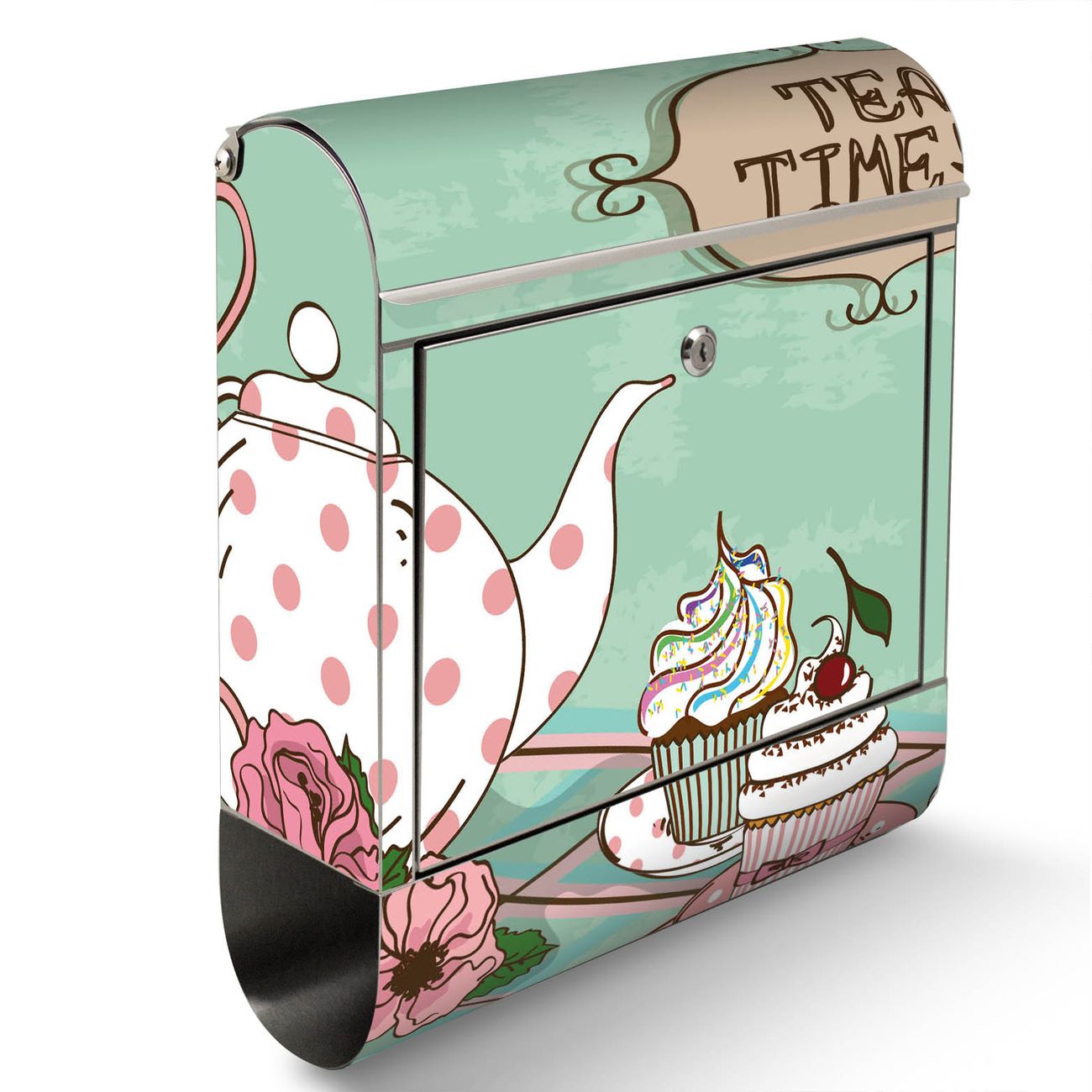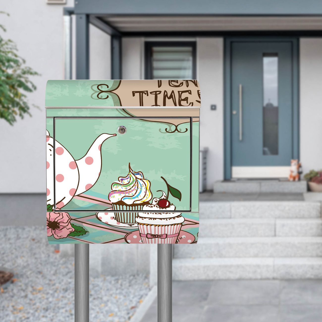 Der Motivstandbriefkasten hat ein sehr ansprechendes und ausgefallenes Design, damit entlocken Sie Ihren Nachbarn und dem Postboten ein Lächeln. Heben Sie Sich ab von der tristen grauen Masse, ohne auf Funktionalität zu verzichten. Der Briefkasten besteht aus hochwertigem 18/0 Edelstahl und die Wetter- und UV-resistenten Folie mit Tea Time Motiv ist zusätzlich mit einem Schutzlaminat überzogen. Der Standbriefkasten wird mit Montagematerial und zwei Schlüsseln geliefert.