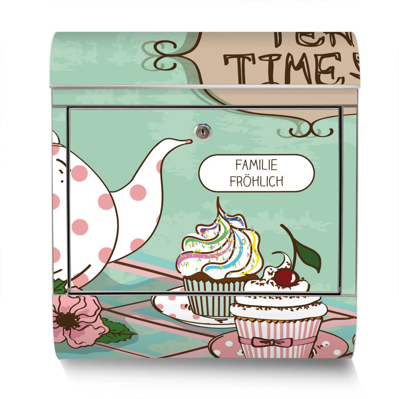 Der Motivstandbriefkasten hat ein sehr ansprechendes und ausgefallenes Design, damit entlocken Sie Ihren Nachbarn und dem Postboten ein Lächeln. Heben Sie Sich ab von der tristen grauen Masse, ohne auf Funktionalität zu verzichten. Der Briefkasten besteht aus hochwertigem 18/0 Edelstahl und die Wetter- und UV-resistenten Folie mit Tea Time Motiv ist zusätzlich mit einem Schutzlaminat überzogen. Der Standbriefkasten wird mit Montagematerial und zwei Schlüsseln geliefert.
