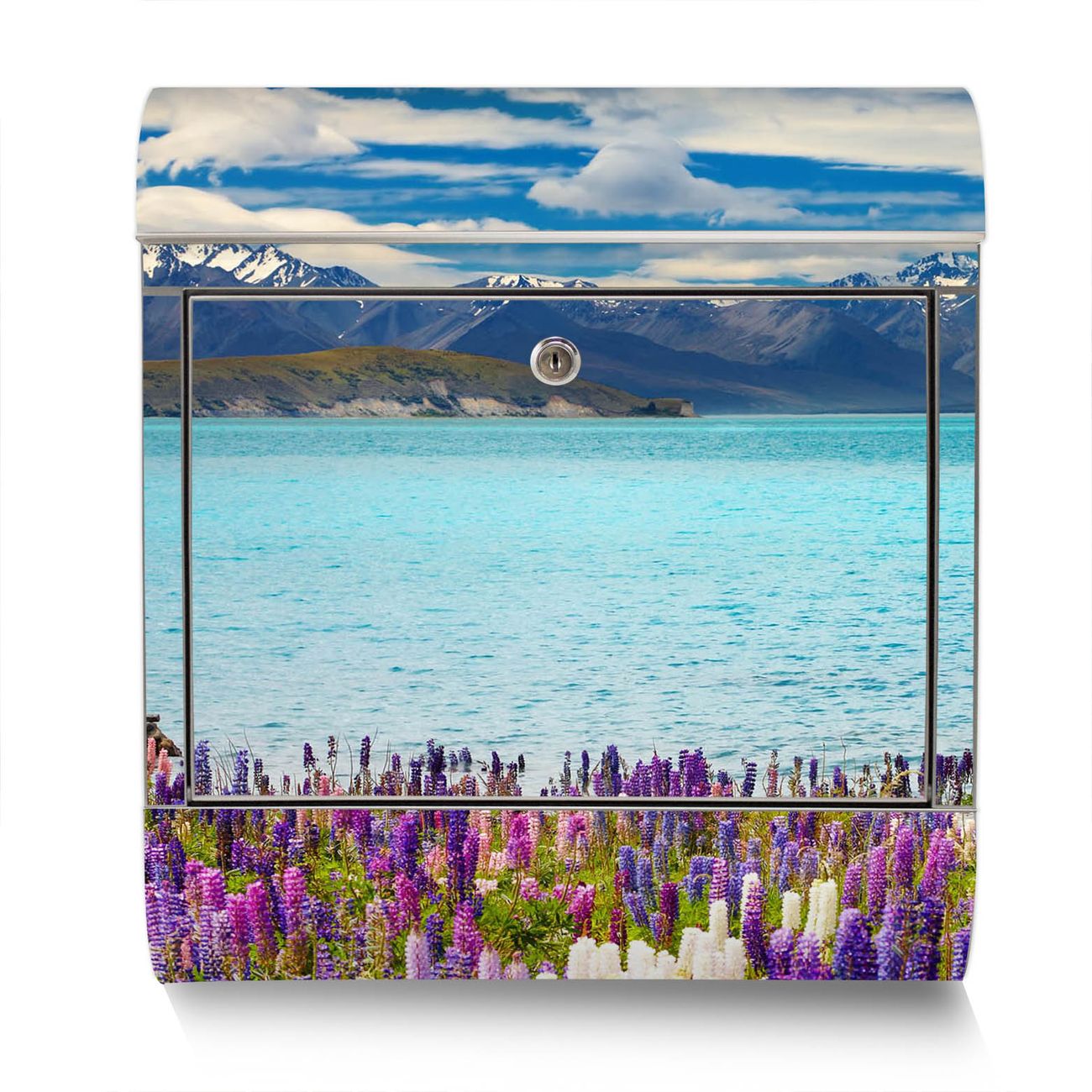 Der Motivstandbriefkasten hat ein sehr ansprechendes und ausgefallenes Design, damit entlocken Sie Ihren Nachbarn und dem Postboten ein Lächeln. Heben Sie Sich ab von der tristen grauen Masse, ohne auf Funktionalität zu verzichten. Der Briefkasten besteht aus hochwertigem 18/0 Edelstahl und die Wetter- und UV-resistenten Folie mit Tekapo See Motiv ist zusätzlich mit einem Schutzlaminat überzogen. Der Standbriefkasten wird mit Montagematerial und zwei Schlüsseln geliefert.