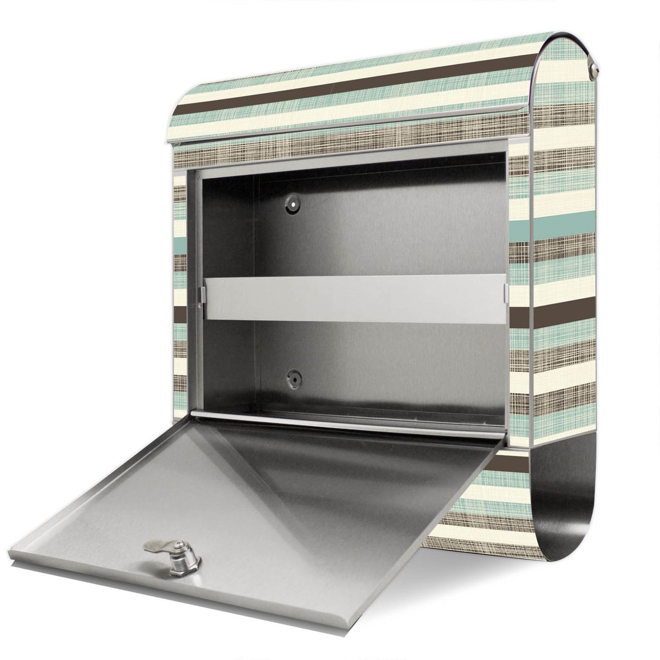 Der Motivstandbriefkasten hat ein sehr ansprechendes und ausgefallenes Design, damit entlocken Sie Ihren Nachbarn und dem Postboten ein Lächeln. Heben Sie Sich ab von der tristen grauen Masse, ohne auf Funktionalität zu verzichten. Der Briefkasten besteht aus hochwertigem 18/0 Edelstahl und die Wetter- und UV-resistenten Folie mit Textile Streifen Motiv ist zusätzlich mit einem Schutzlaminat überzogen. Der Standbriefkasten wird mit Montagematerial und zwei Schlüsseln geliefert.