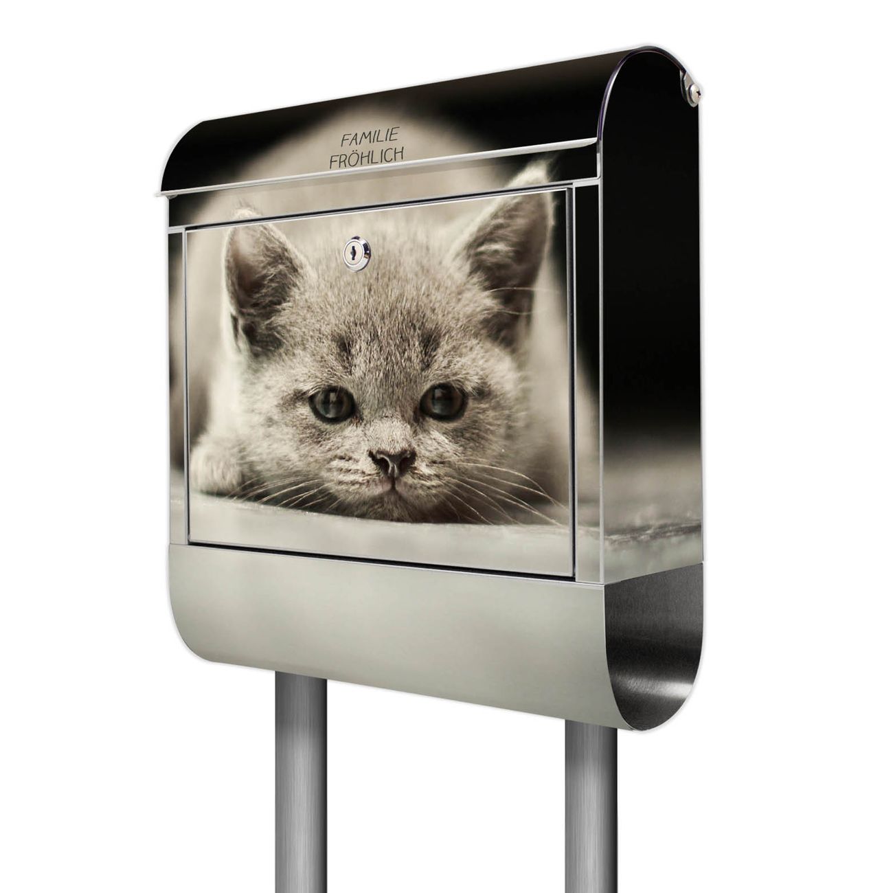 Der Motivstandbriefkasten hat ein sehr ansprechendes und ausgefallenes Design, damit entlocken Sie Ihren Nachbarn und dem Postboten ein Lächeln. Heben Sie Sich ab von der tristen grauen Masse, ohne auf Funktionalität zu verzichten. Der Briefkasten besteht aus hochwertigem 18/0 Edelstahl und die Wetter- und UV-resistenten Folie mit Theodor Motiv ist zusätzlich mit einem Schutzlaminat überzogen. Der Standbriefkasten wird mit Montagematerial und zwei Schlüsseln geliefert.