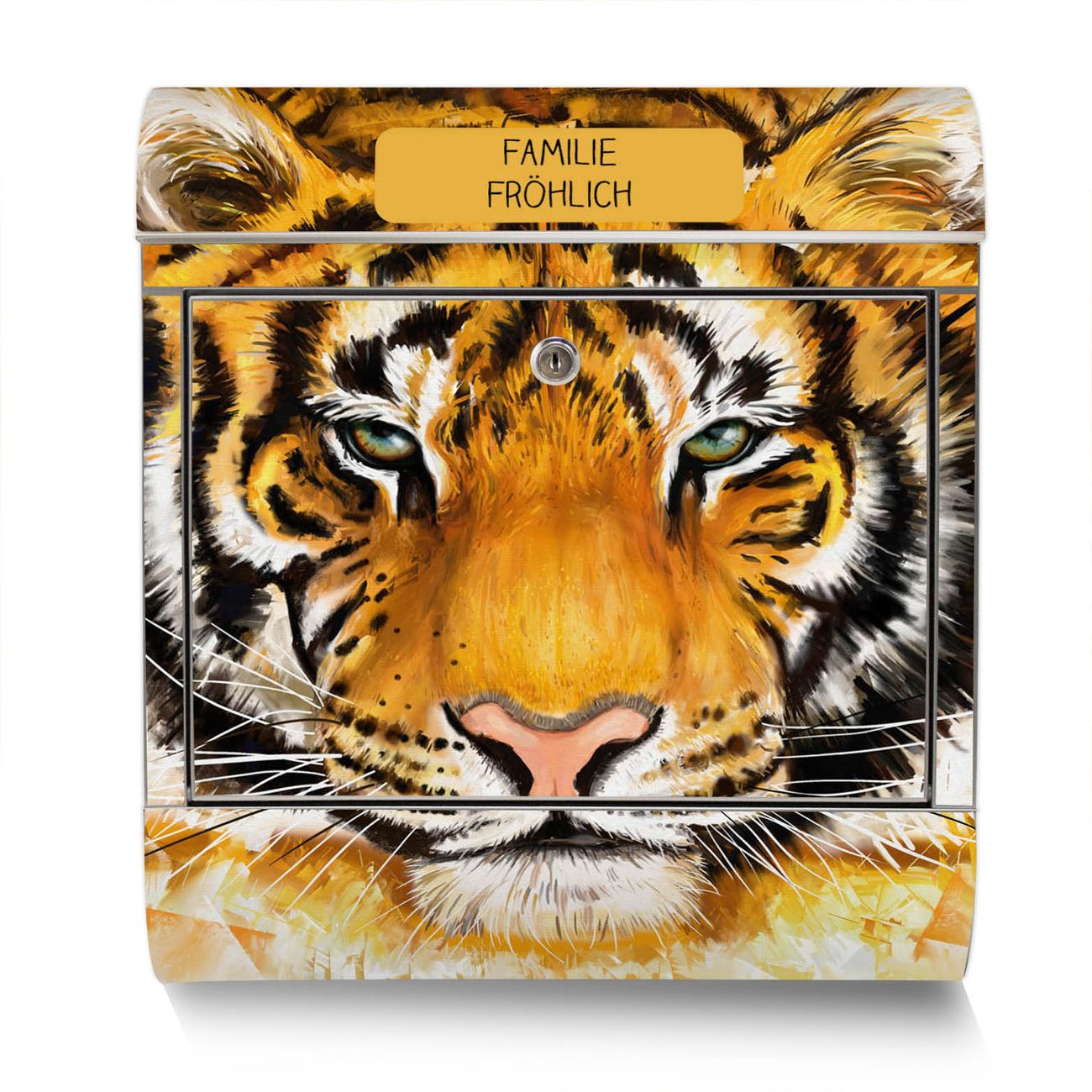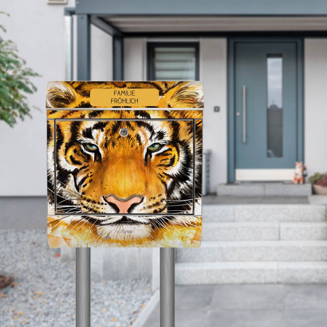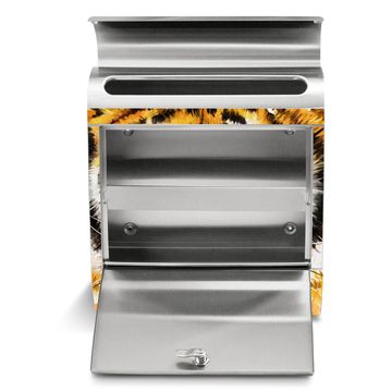 Der Motivstandbriefkasten hat ein sehr ansprechendes und ausgefallenes Design, damit entlocken Sie Ihren Nachbarn und dem Postboten ein Lächeln. Heben Sie Sich ab von der tristen grauen Masse, ohne auf Funktionalität zu verzichten. Der Briefkasten besteht aus hochwertigem 18/0 Edelstahl und die Wetter- und UV-resistenten Folie mit Tigerkopf Motiv ist zusätzlich mit einem Schutzlaminat überzogen. Der Standbriefkasten wird mit Montagematerial und zwei Schlüsseln geliefert.