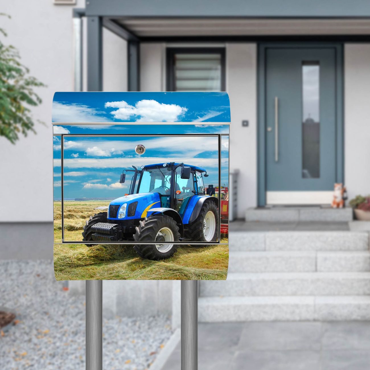 Der Motivstandbriefkasten hat ein sehr ansprechendes und ausgefallenes Design, damit entlocken Sie Ihren Nachbarn und dem Postboten ein Lächeln. Heben Sie Sich ab von der tristen grauen Masse, ohne auf Funktionalität zu verzichten. Der Briefkasten besteht aus hochwertigem 18/0 Edelstahl und die Wetter- und UV-resistenten Folie mit Traktor Motiv ist zusätzlich mit einem Schutzlaminat überzogen. Der Standbriefkasten wird mit Montagematerial und zwei Schlüsseln geliefert.