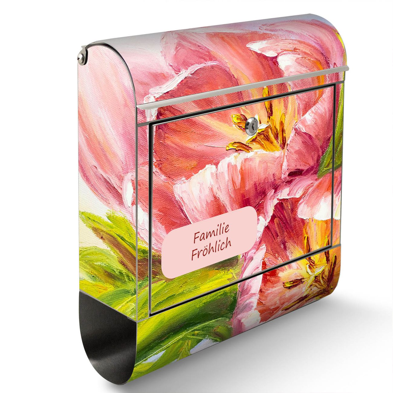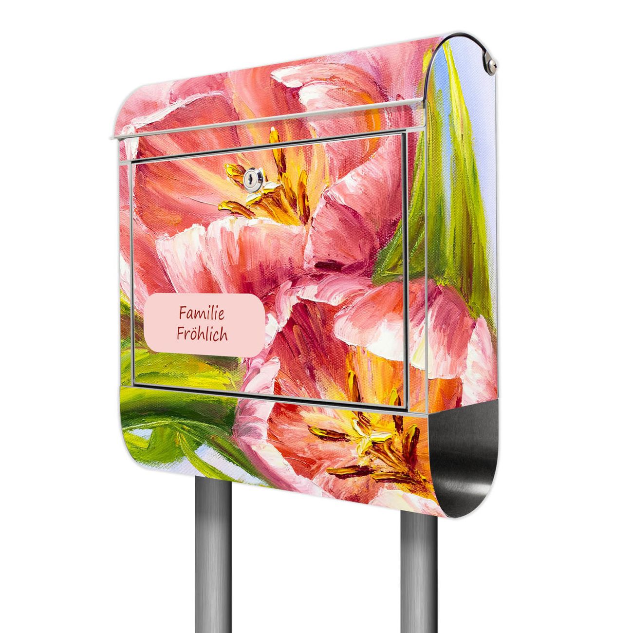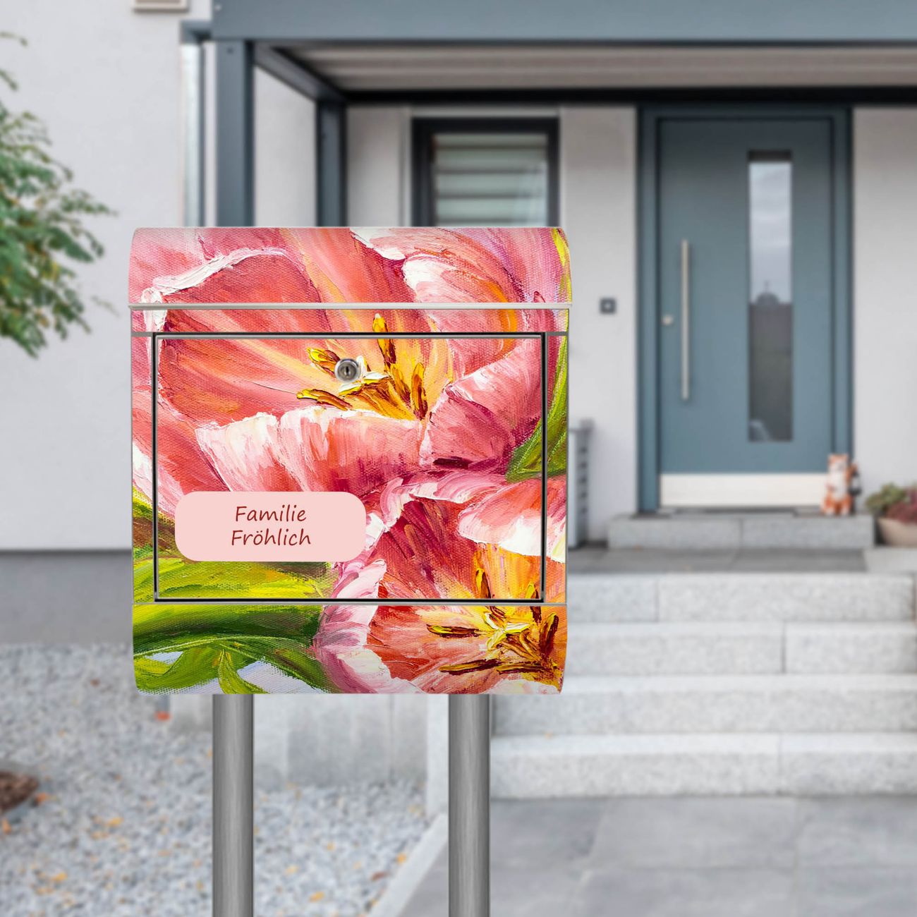 Der Motivstandbriefkasten hat ein sehr ansprechendes und ausgefallenes Design, damit entlocken Sie Ihren Nachbarn und dem Postboten ein Lächeln. Heben Sie Sich ab von der tristen grauen Masse, ohne auf Funktionalität zu verzichten. Der Briefkasten besteht aus hochwertigem 18/0 Edelstahl und die Wetter- und UV-resistenten Folie mit Tulpen Detail Motiv ist zusätzlich mit einem Schutzlaminat überzogen. Der Standbriefkasten wird mit Montagematerial und zwei Schlüsseln geliefert.