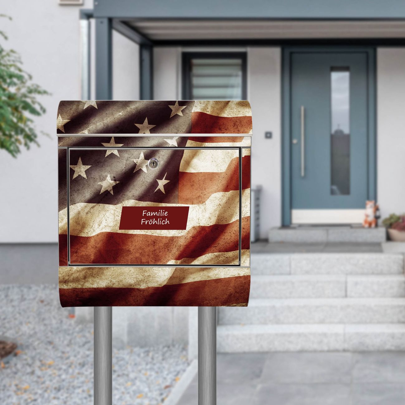 Der Motivstandbriefkasten hat ein sehr ansprechendes und ausgefallenes Design, damit entlocken Sie Ihren Nachbarn und dem Postboten ein Lächeln. Heben Sie Sich ab von der tristen grauen Masse, ohne auf Funktionalität zu verzichten. Der Briefkasten besteht aus hochwertigem 18/0 Edelstahl und die Wetter- und UV-resistenten Folie mit United States Motiv ist zusätzlich mit einem Schutzlaminat überzogen. Der Standbriefkasten wird mit Montagematerial und zwei Schlüsseln geliefert.