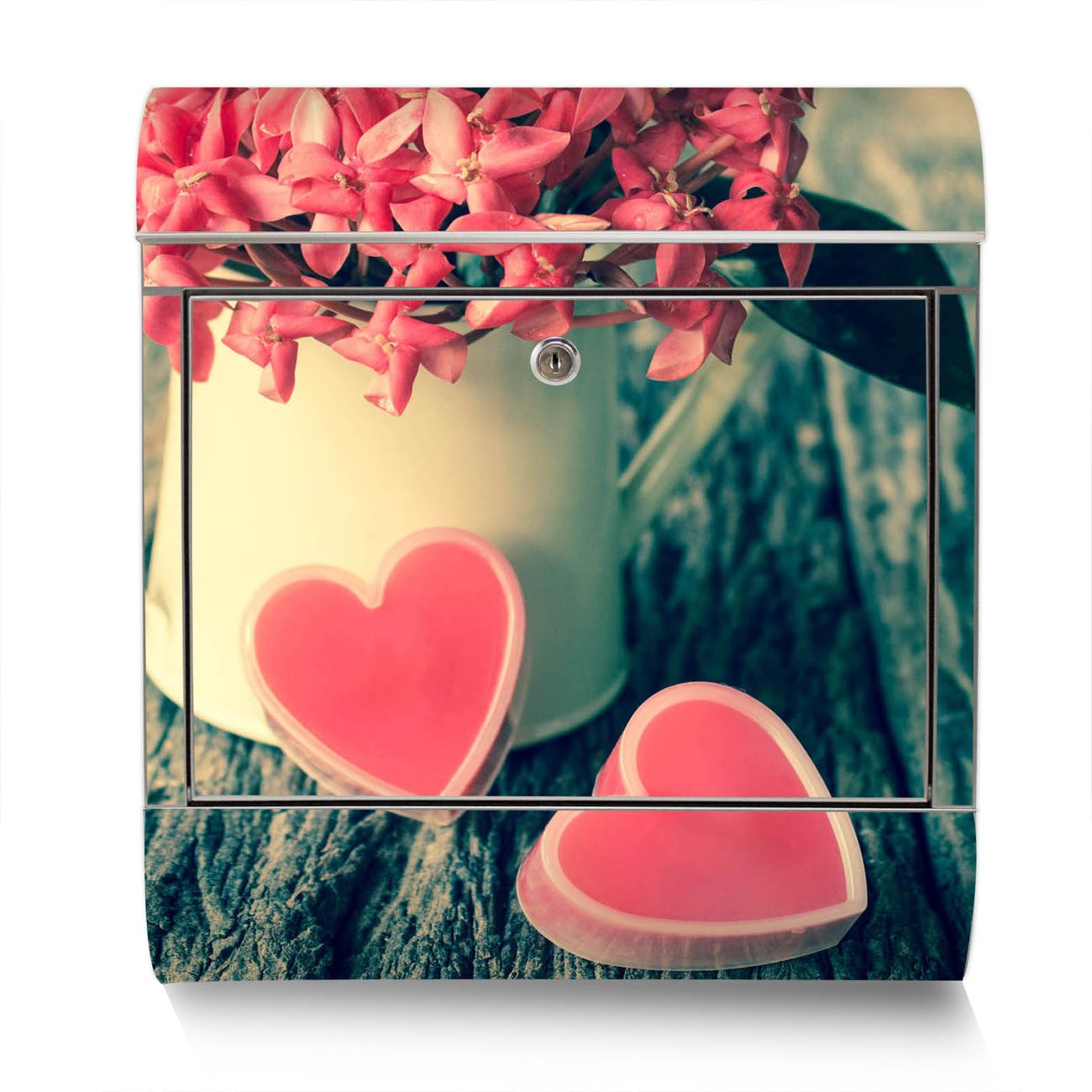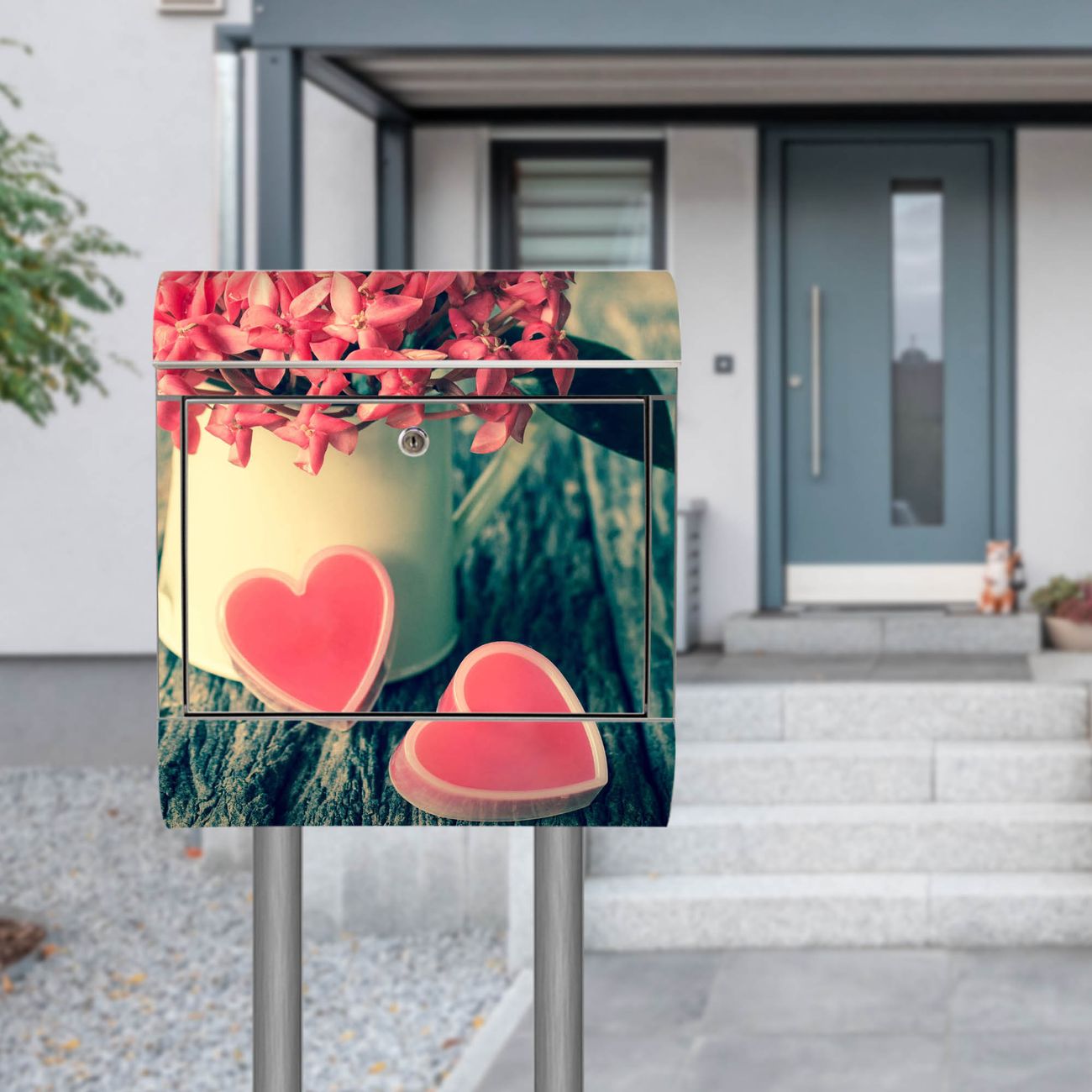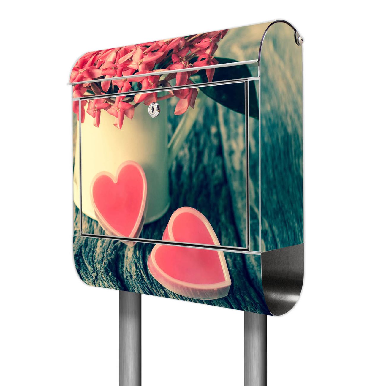 Der Motivstandbriefkasten hat ein sehr ansprechendes und ausgefallenes Design, damit entlocken Sie Ihren Nachbarn und dem Postboten ein Lächeln. Heben Sie Sich ab von der tristen grauen Masse, ohne auf Funktionalität zu verzichten. Der Briefkasten besteht aus hochwertigem 18/0 Edelstahl und die Wetter- und UV-resistenten Folie mit Valentin Motiv ist zusätzlich mit einem Schutzlaminat überzogen. Der Standbriefkasten wird mit Montagematerial und zwei Schlüsseln geliefert.
