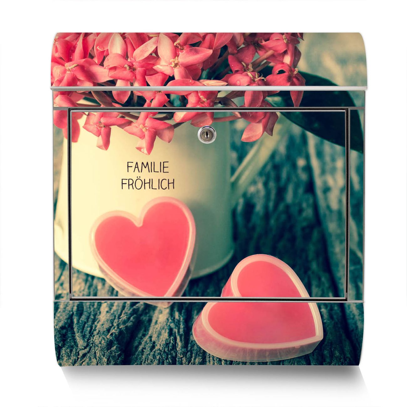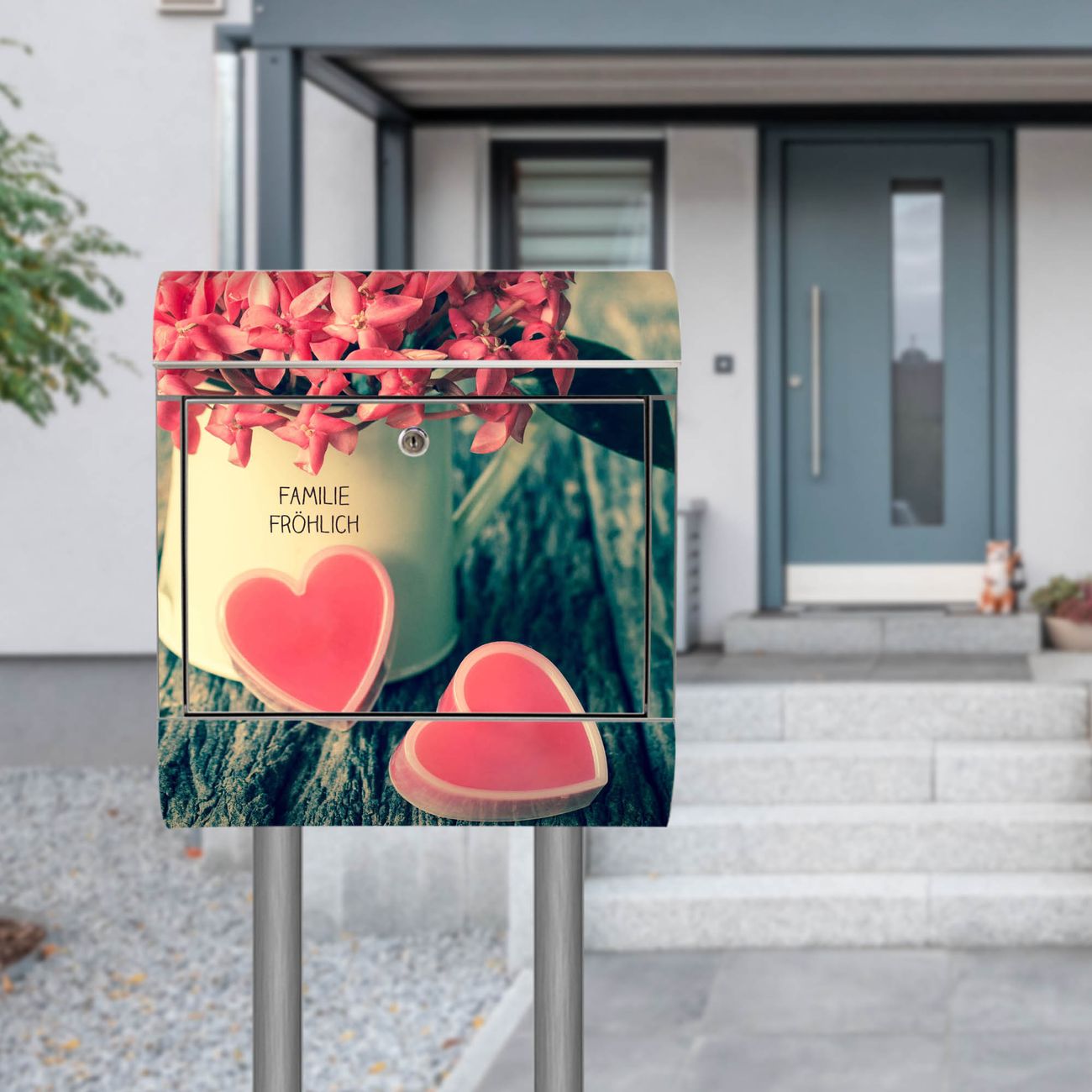 Der Motivstandbriefkasten hat ein sehr ansprechendes und ausgefallenes Design, damit entlocken Sie Ihren Nachbarn und dem Postboten ein Lächeln. Heben Sie Sich ab von der tristen grauen Masse, ohne auf Funktionalität zu verzichten. Der Briefkasten besteht aus hochwertigem 18/0 Edelstahl und die Wetter- und UV-resistenten Folie mit Valentin Motiv ist zusätzlich mit einem Schutzlaminat überzogen. Der Standbriefkasten wird mit Montagematerial und zwei Schlüsseln geliefert.
