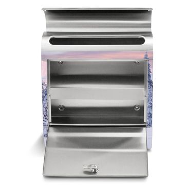 Der banjado Edelstahl Standbriefkasten mit Motiv Verschneite Berge und eigenem Wunschtext bietet Ihnen mit seinem Fassungsvermögen genügend Platz auch für große A4 Sendungen. Das integrierte Zeitungsfach eignet sich hervorragend, um unkompliziert die Tageszeitung zu fassen.