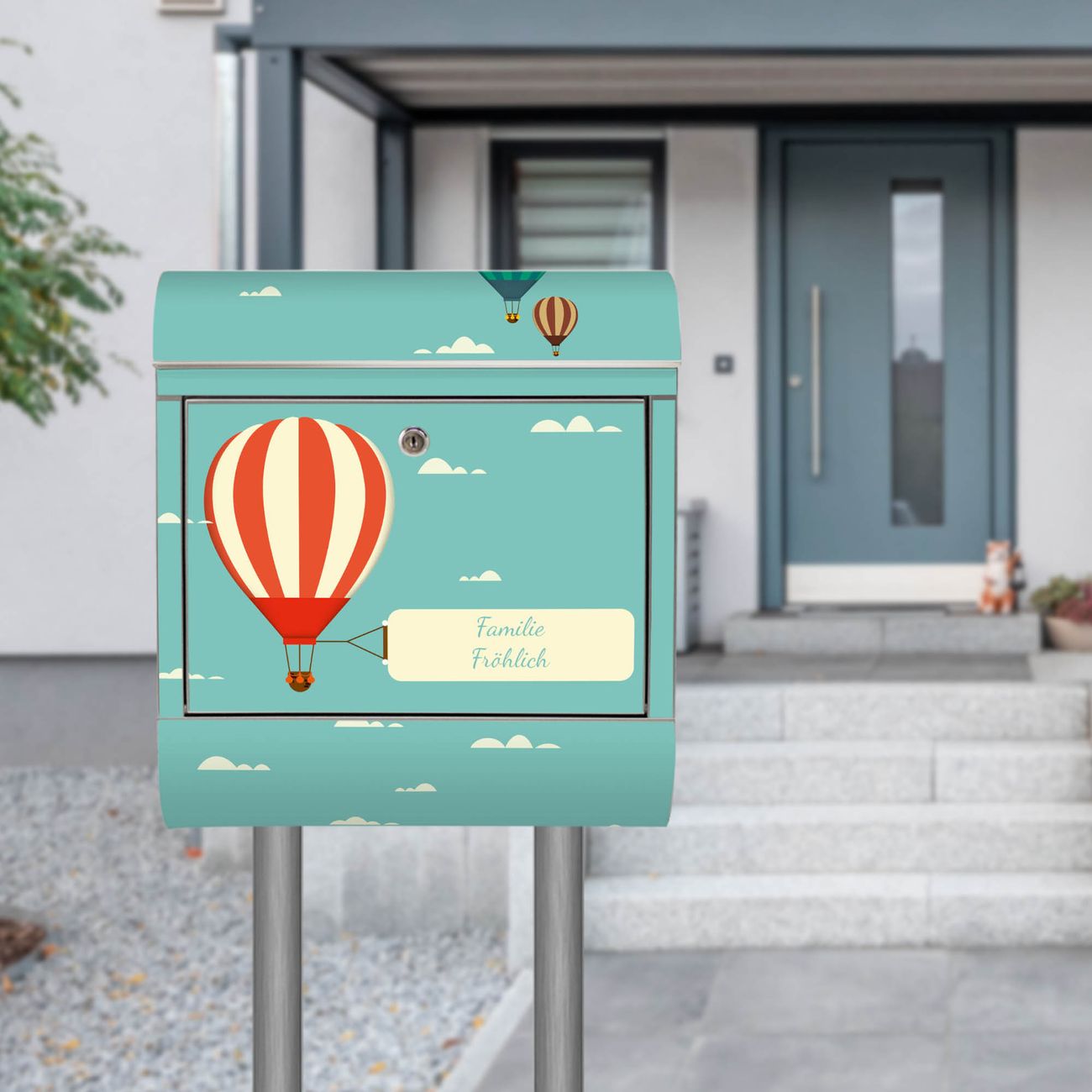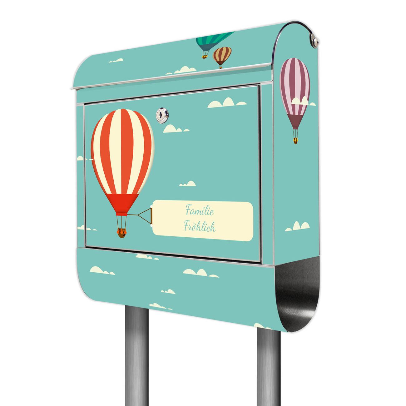 Der Motivstandbriefkasten hat ein sehr ansprechendes und ausgefallenes Design, damit entlocken Sie Ihren Nachbarn und dem Postboten ein Lächeln. Heben Sie Sich ab von der tristen grauen Masse, ohne auf Funktionalität zu verzichten. Der Briefkasten besteht aus hochwertigem 18/0 Edelstahl und die Wetter- und UV-resistenten Folie mit Vier Ballons Motiv ist zusätzlich mit einem Schutzlaminat überzogen. Der Standbriefkasten wird mit Montagematerial und zwei Schlüsseln geliefert.