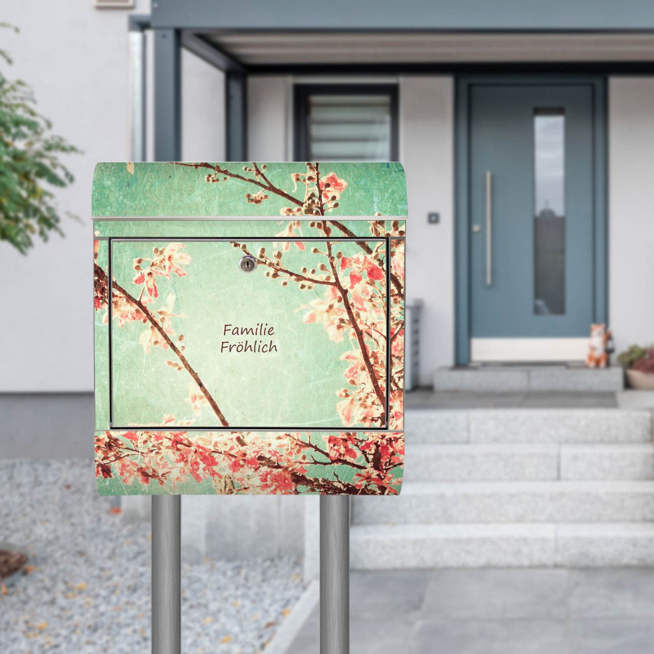Der banjado Edelstahl Standbriefkasten mit Motiv Vintage Herbst und eigenem Wunschtext bietet Ihnen mit seinem Fassungsvermögen genügend Platz auch für große A4 Sendungen. Das integrierte Zeitungsfach eignet sich hervorragend, um unkompliziert die Tageszeitung zu fassen.