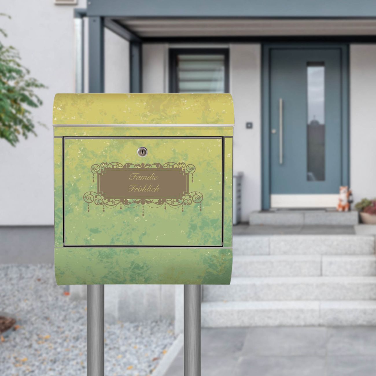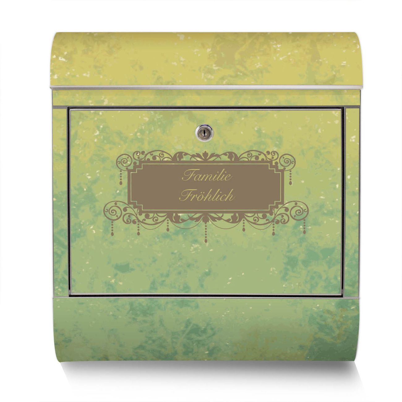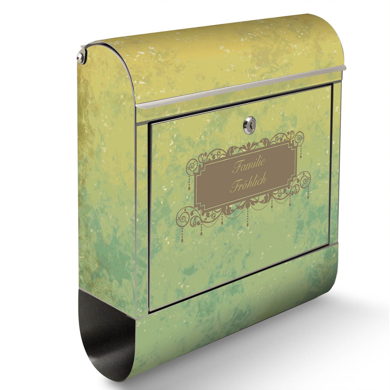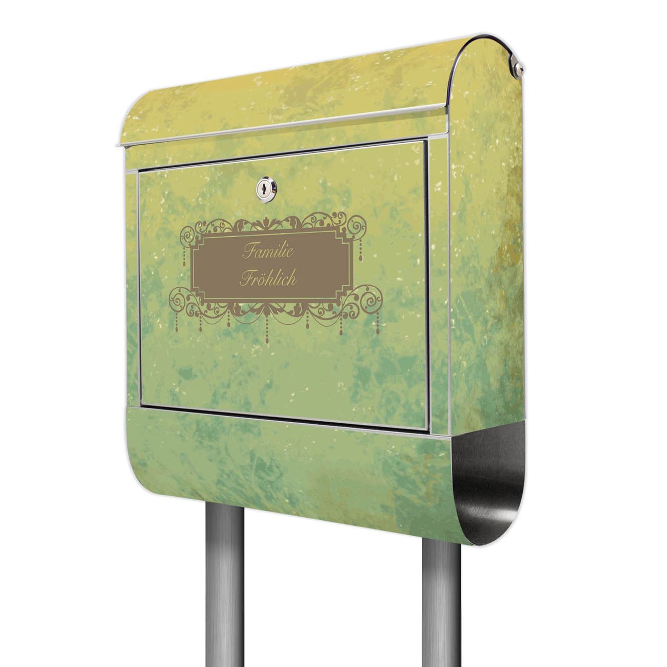 Der Motivstandbriefkasten hat ein sehr ansprechendes und ausgefallenes Design, damit entlocken Sie Ihren Nachbarn und dem Postboten ein Lächeln. Heben Sie Sich ab von der tristen grauen Masse, ohne auf Funktionalität zu verzichten. Der Briefkasten besteht aus hochwertigem 18/0 Edelstahl und die Wetter- und UV-resistenten Folie mit Vintage Messing Motiv ist zusätzlich mit einem Schutzlaminat überzogen. Der Standbriefkasten wird mit Montagematerial und zwei Schlüsseln geliefert.