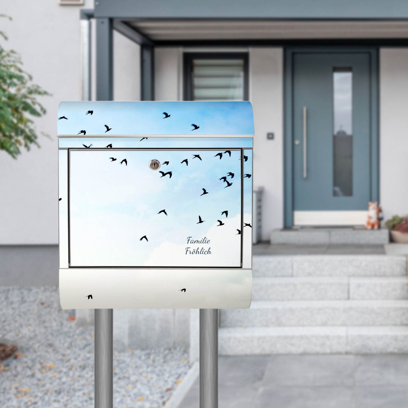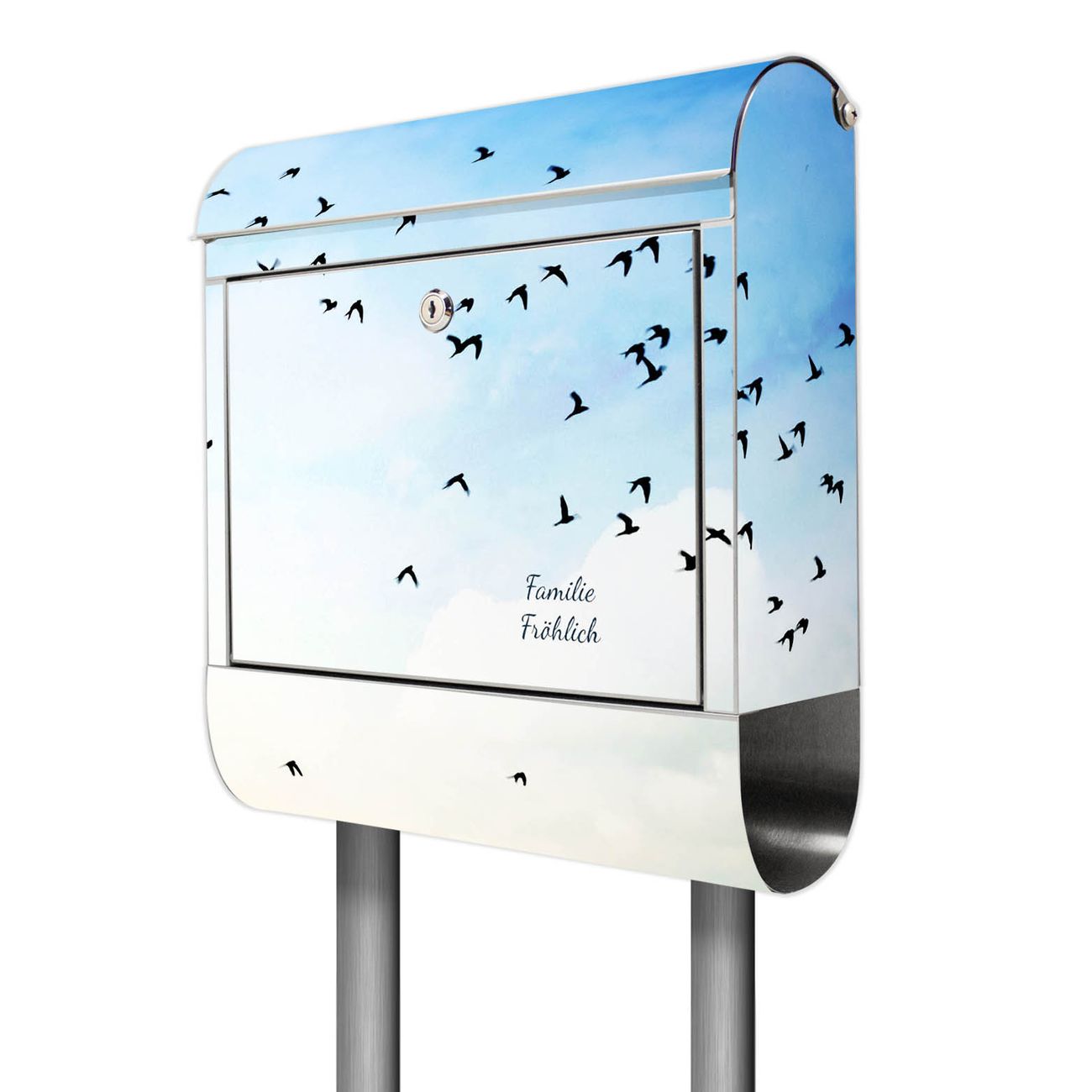 Standbriefkasten Edelstahl Vögel am Himmel 2
