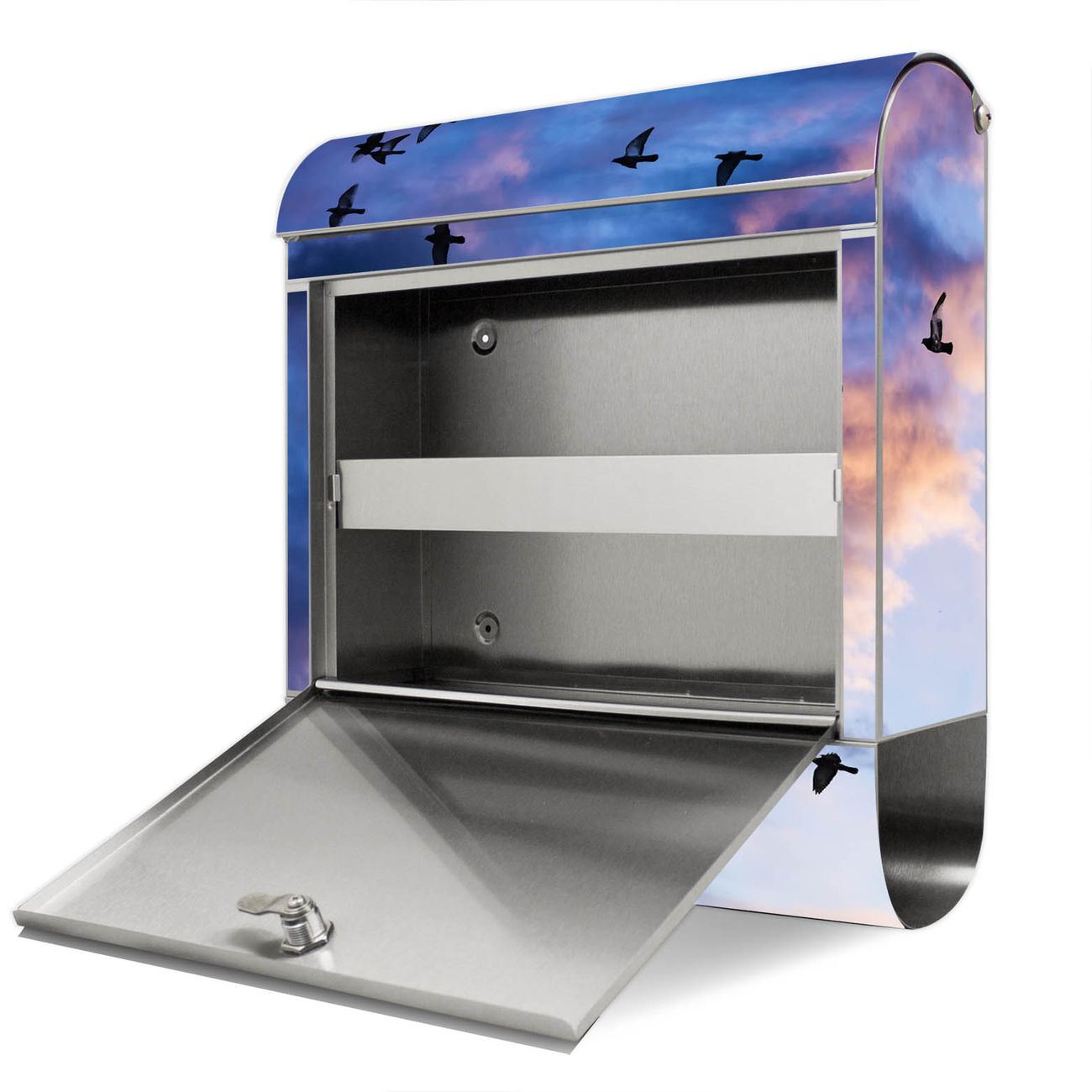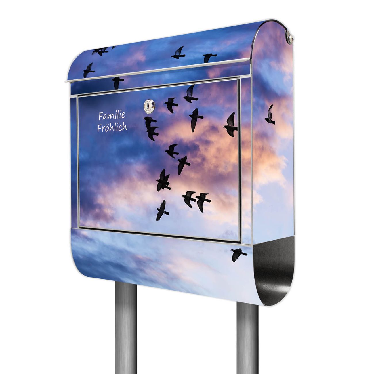 Standbriefkasten Edelstahl Vögel am Himmel 3