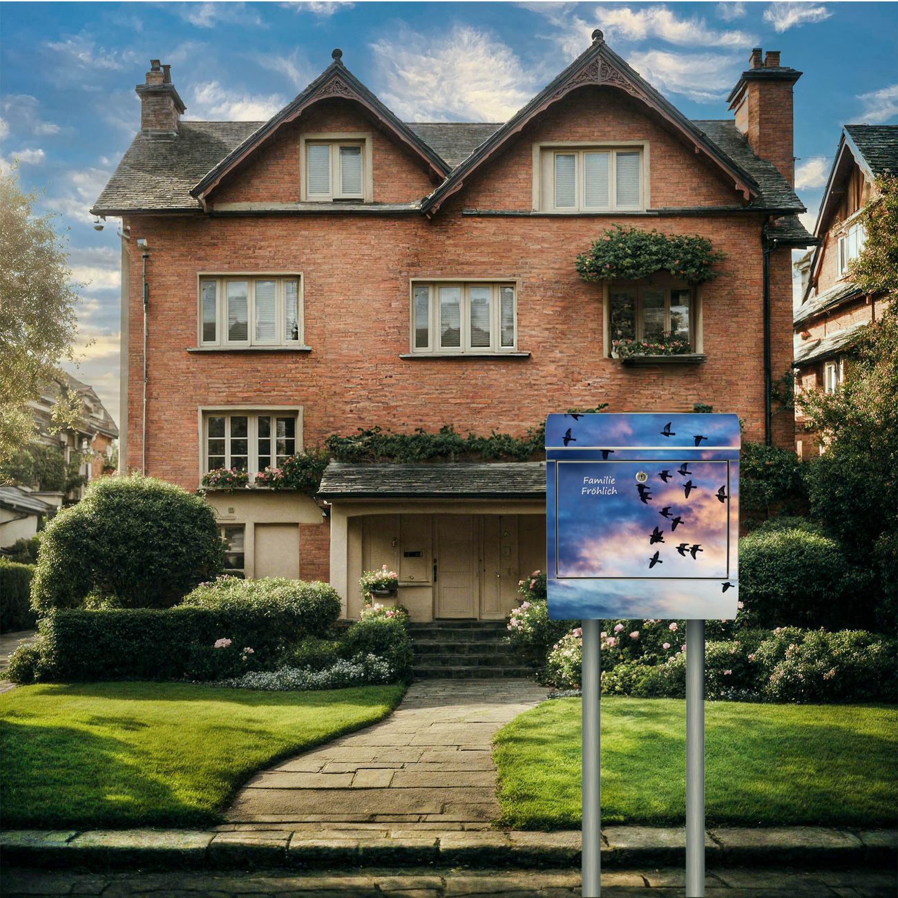 Der Motivstandbriefkasten hat ein sehr ansprechendes und ausgefallenes Design, damit entlocken Sie Ihren Nachbarn und dem Postboten ein Lächeln. Heben Sie Sich ab von der tristen grauen Masse, ohne auf Funktionalität zu verzichten. Der Briefkasten besteht aus hochwertigem 18/0 Edelstahl und die Wetter- und UV-resistenten Folie mit Vögel am Himmel 3 Motiv ist zusätzlich mit einem Schutzlaminat überzogen. Der Standbriefkasten wird mit Montagematerial und zwei Schlüsseln geliefert.
