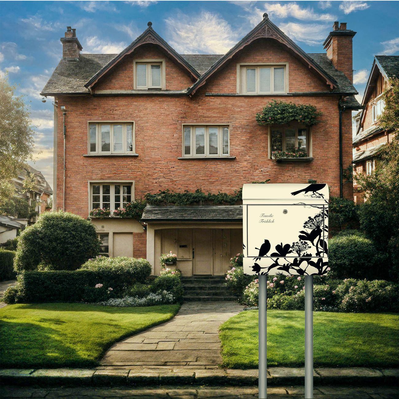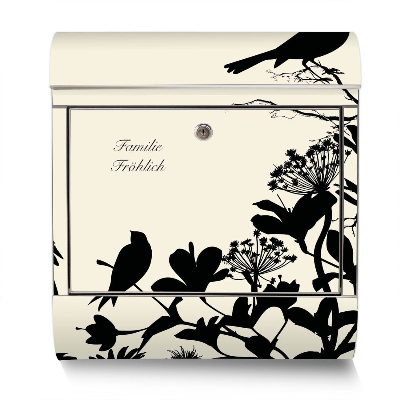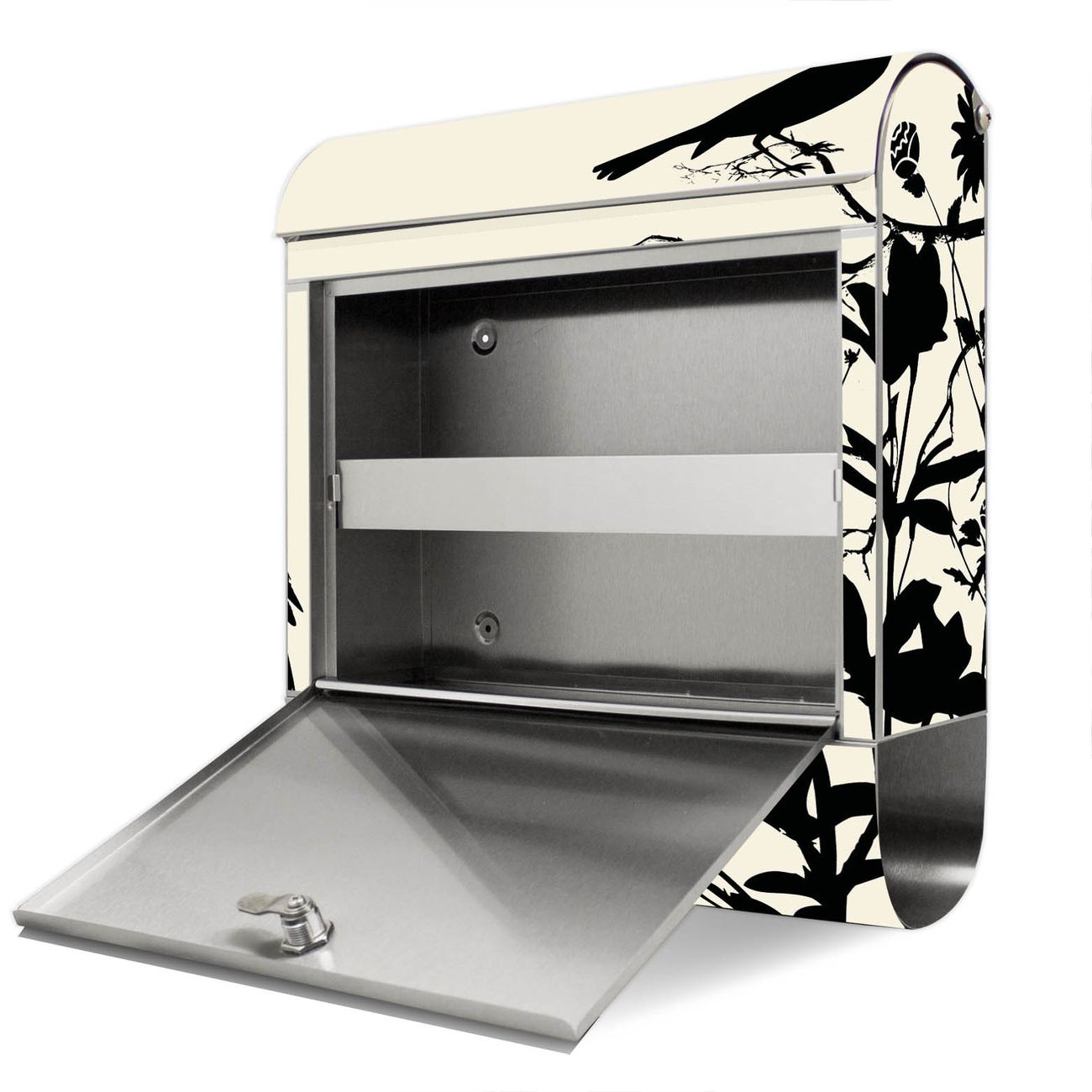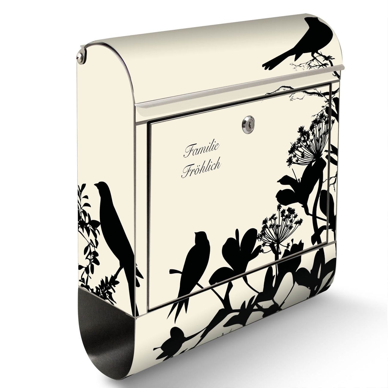 Standbriefkasten Edelstahl Vögel Schattenriß