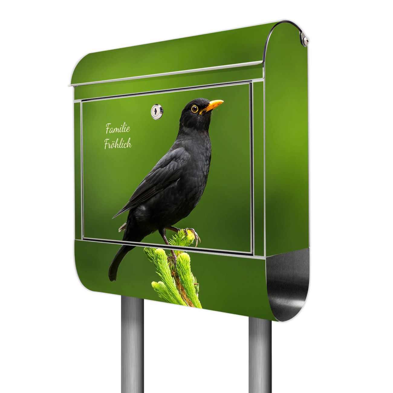 Standbriefkasten Edelstahl Vogel auf Tannenzweig