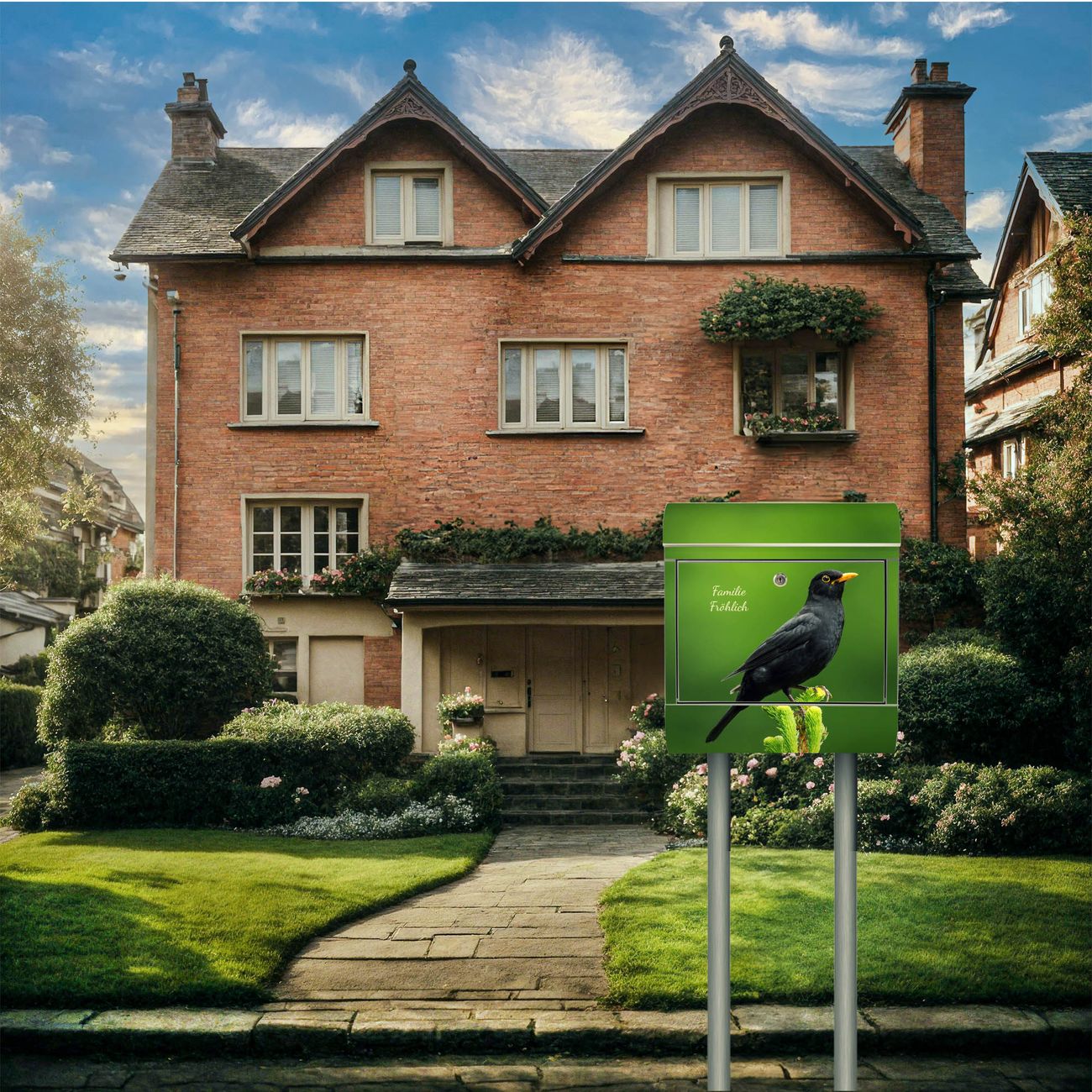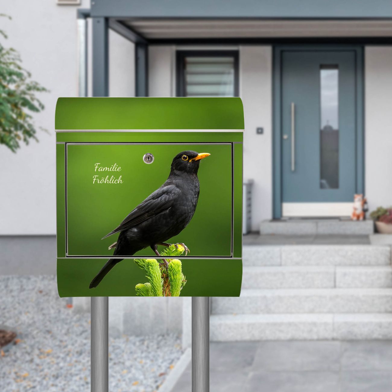 Der Motivstandbriefkasten hat ein sehr ansprechendes und ausgefallenes Design, damit entlocken Sie Ihren Nachbarn und dem Postboten ein Lächeln. Heben Sie Sich ab von der tristen grauen Masse, ohne auf Funktionalität zu verzichten. Der Briefkasten besteht aus hochwertigem 18/0 Edelstahl und die Wetter- und UV-resistenten Folie mit Vogel auf Tannenzweig Motiv ist zusätzlich mit einem Schutzlaminat überzogen. Der Standbriefkasten wird mit Montagematerial und zwei Schlüsseln geliefert.