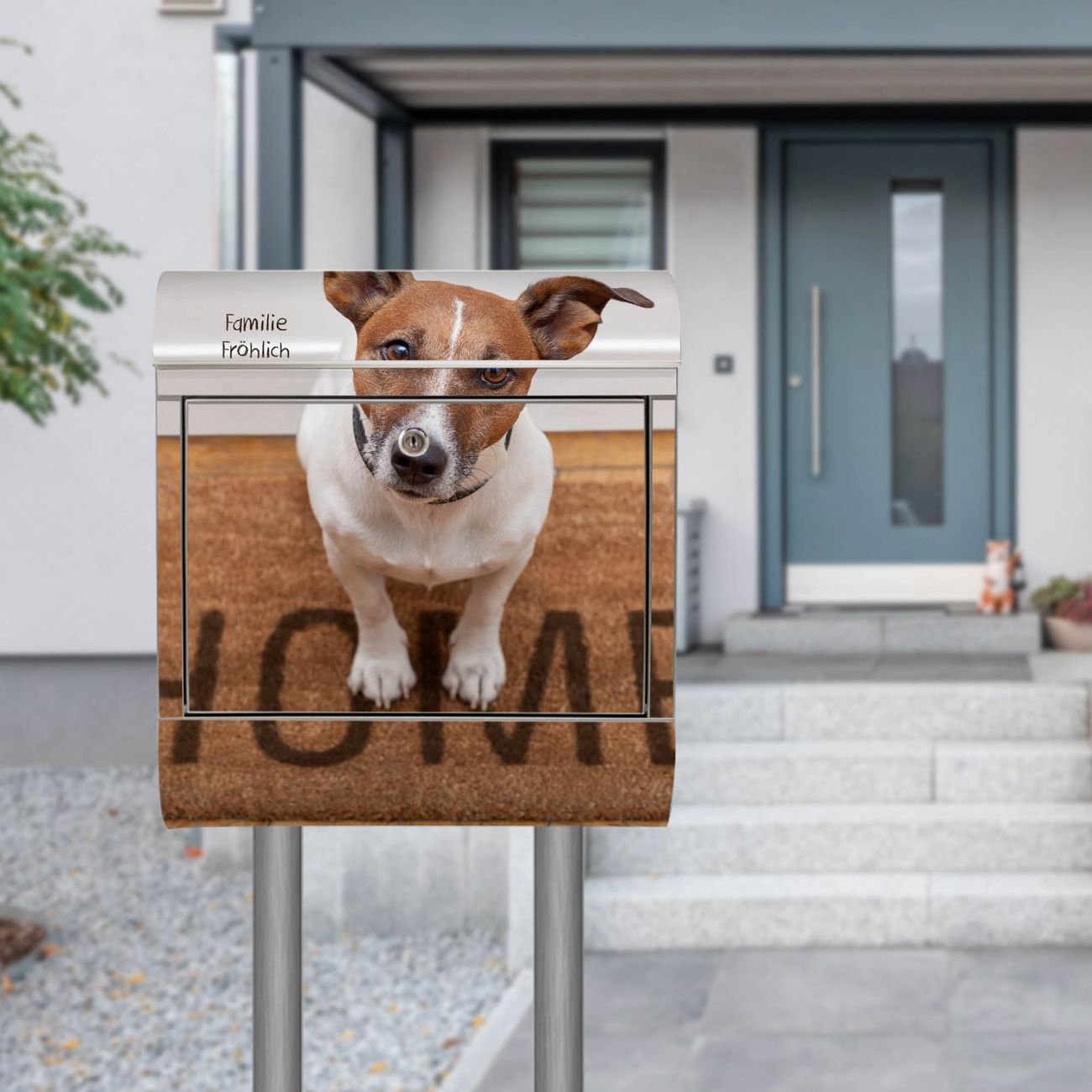 Standbriefkasten Edelstahl Wachhund Jack Russel