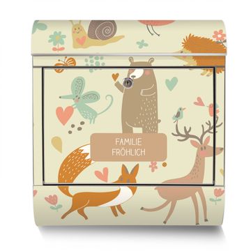Der banjado Edelstahl Standbriefkasten mit Motiv Waldtiere und eigenem Wunschtext bietet Ihnen mit seinem Fassungsvermögen genügend Platz auch für große A4 Sendungen. Das integrierte Zeitungsfach eignet sich hervorragend, um unkompliziert die Tageszeitung zu fassen.