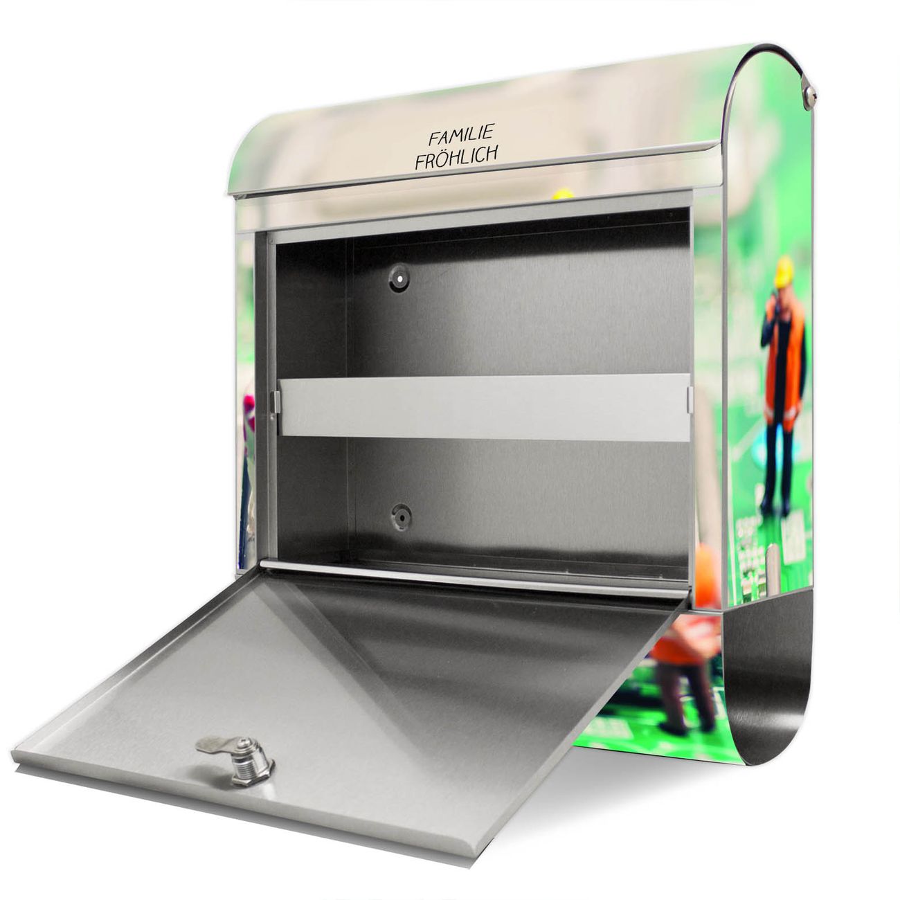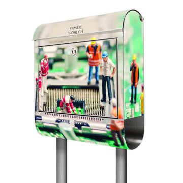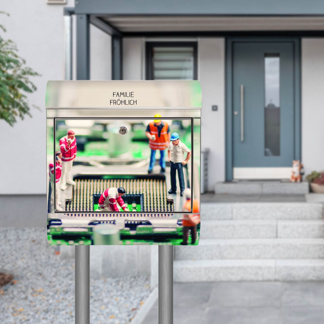 Der Motivstandbriefkasten hat ein sehr ansprechendes und ausgefallenes Design, damit entlocken Sie Ihren Nachbarn und dem Postboten ein Lächeln. Heben Sie Sich ab von der tristen grauen Masse, ohne auf Funktionalität zu verzichten. Der Briefkasten besteht aus hochwertigem 18/0 Edelstahl und die Wetter- und UV-resistenten Folie mit Wartungsarbeiten Motiv ist zusätzlich mit einem Schutzlaminat überzogen. Der Standbriefkasten wird mit Montagematerial und zwei Schlüsseln geliefert.
