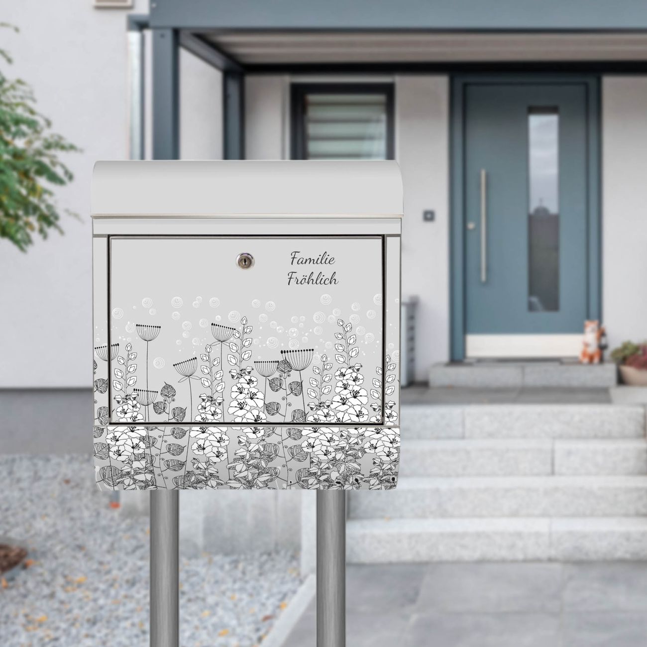 Der Motivstandbriefkasten hat ein sehr ansprechendes und ausgefallenes Design, damit entlocken Sie Ihren Nachbarn und dem Postboten ein Lächeln. Heben Sie Sich ab von der tristen grauen Masse, ohne auf Funktionalität zu verzichten. Der Briefkasten besteht aus hochwertigem 18/0 Edelstahl und die Wetter- und UV-resistenten Folie mit Wegesrand Motiv ist zusätzlich mit einem Schutzlaminat überzogen. Der Standbriefkasten wird mit Montagematerial und zwei Schlüsseln geliefert.