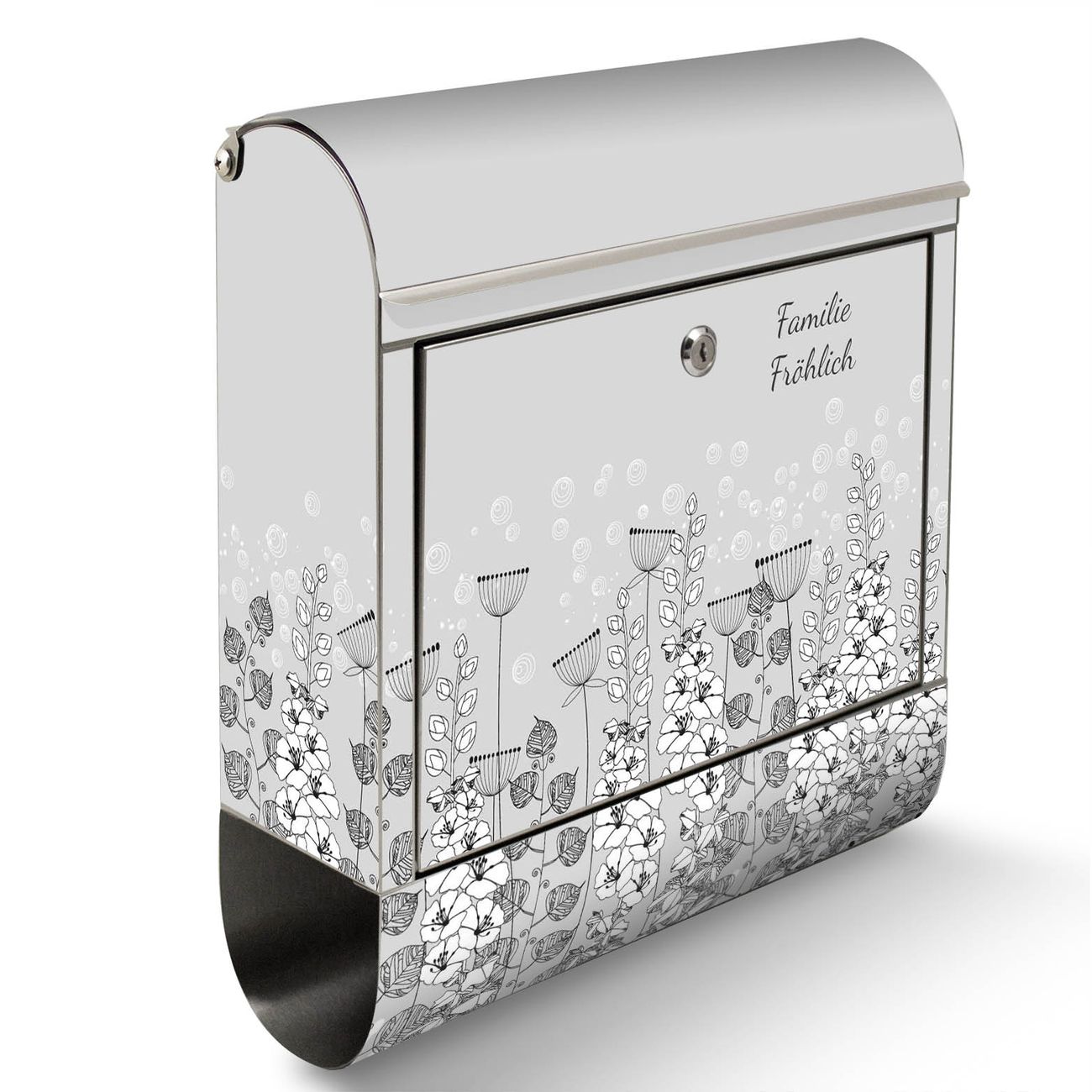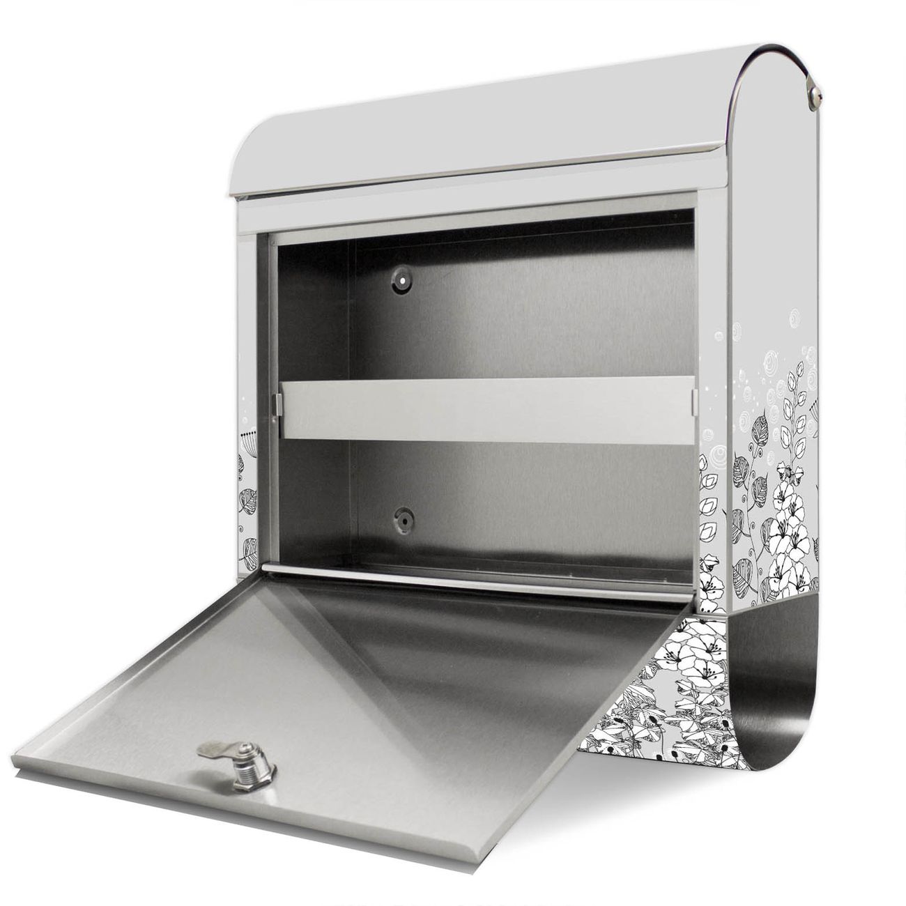 Der banjado Edelstahl Standbriefkasten mit Motiv Wegesrand und eigenem Wunschtext bietet Ihnen mit seinem Fassungsvermögen genügend Platz auch für große A4 Sendungen. Das integrierte Zeitungsfach eignet sich hervorragend, um unkompliziert die Tageszeitung zu fassen.