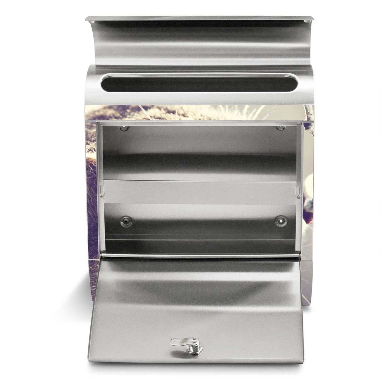 Der banjado Edelstahl Standbriefkasten mit Motiv Weidenkätzchen bietet Ihnen mit seinem Fassungsvermögen genügend Platz auch für große A4 Sendungen. Das integrierte Zeitungsfach eignet sich hervorragend, um unkompliziert die Tageszeitung zu fassen.