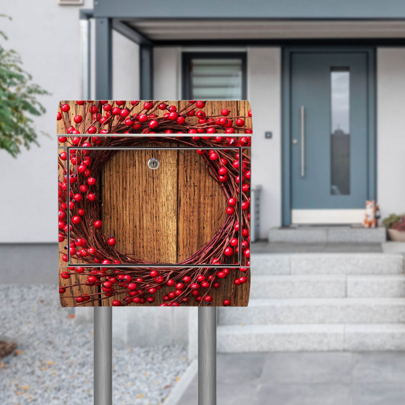 Der Motivstandbriefkasten hat ein sehr ansprechendes und ausgefallenes Design, damit entlocken Sie Ihren Nachbarn und dem Postboten ein Lächeln. Heben Sie Sich ab von der tristen grauen Masse, ohne auf Funktionalität zu verzichten. Der Briefkasten besteht aus hochwertigem 18/0 Edelstahl und die Wetter- und UV-resistenten Folie mit Weihnachtskranz Motiv ist zusätzlich mit einem Schutzlaminat überzogen. Der Standbriefkasten wird mit Montagematerial und zwei Schlüsseln geliefert.