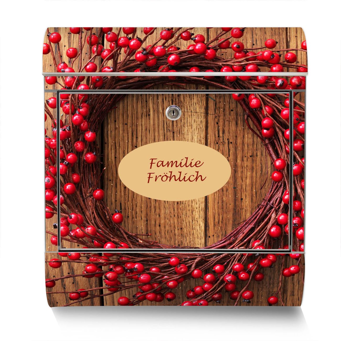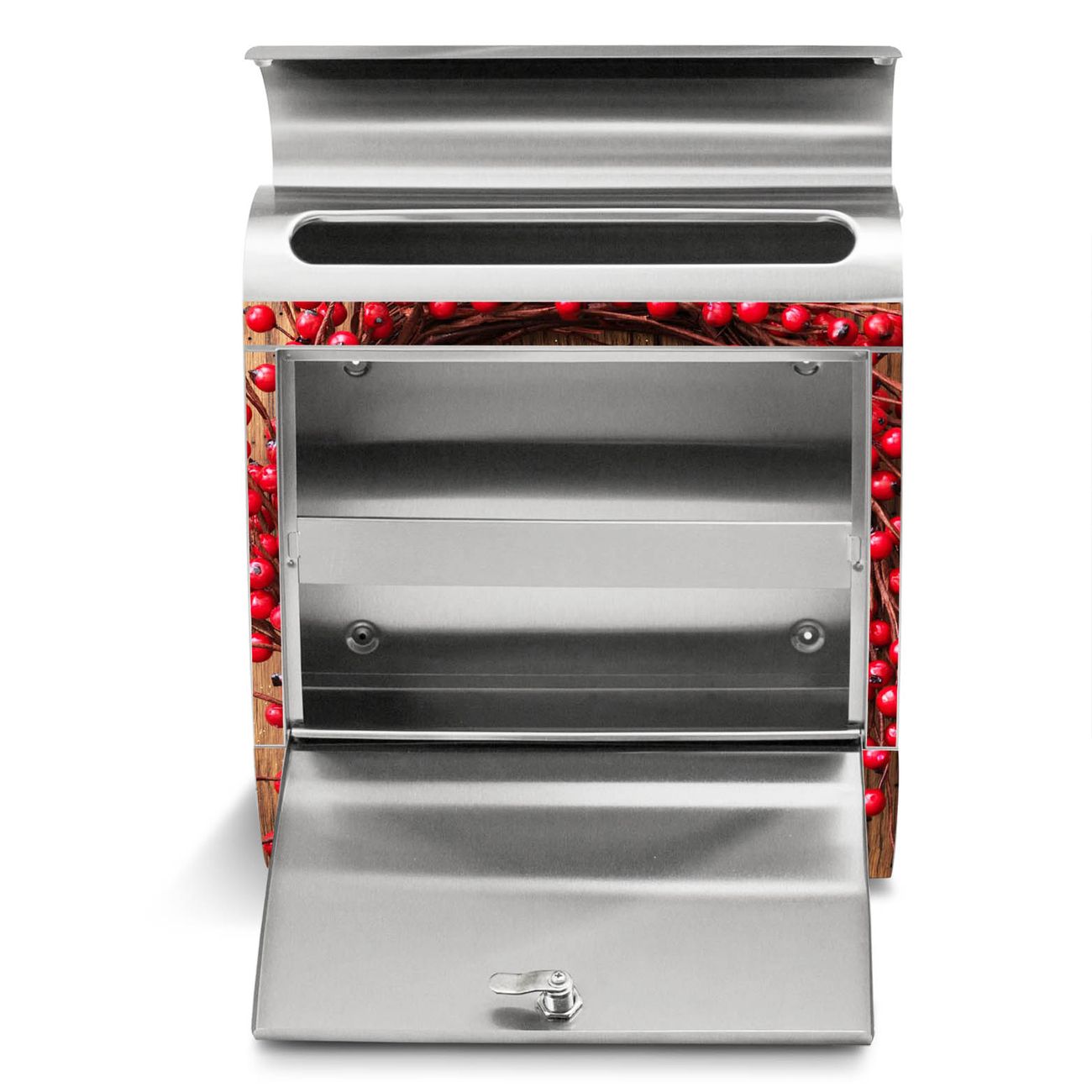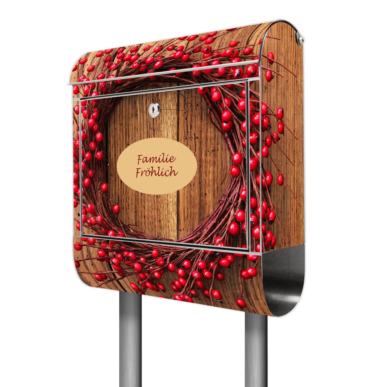 Der Motivstandbriefkasten hat ein sehr ansprechendes und ausgefallenes Design, damit entlocken Sie Ihren Nachbarn und dem Postboten ein Lächeln. Heben Sie Sich ab von der tristen grauen Masse, ohne auf Funktionalität zu verzichten. Der Briefkasten besteht aus hochwertigem 18/0 Edelstahl und die Wetter- und UV-resistenten Folie mit Weihnachtskranz Motiv ist zusätzlich mit einem Schutzlaminat überzogen. Der Standbriefkasten wird mit Montagematerial und zwei Schlüsseln geliefert.
