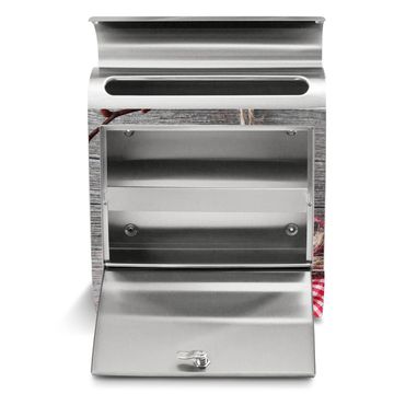 Der banjado Edelstahl Standbriefkasten mit Motiv Weihnachtsstern und eigenem Wunschtext bietet Ihnen mit seinem Fassungsvermögen genügend Platz auch für große A4 Sendungen. Das integrierte Zeitungsfach eignet sich hervorragend, um unkompliziert die Tageszeitung zu fassen.