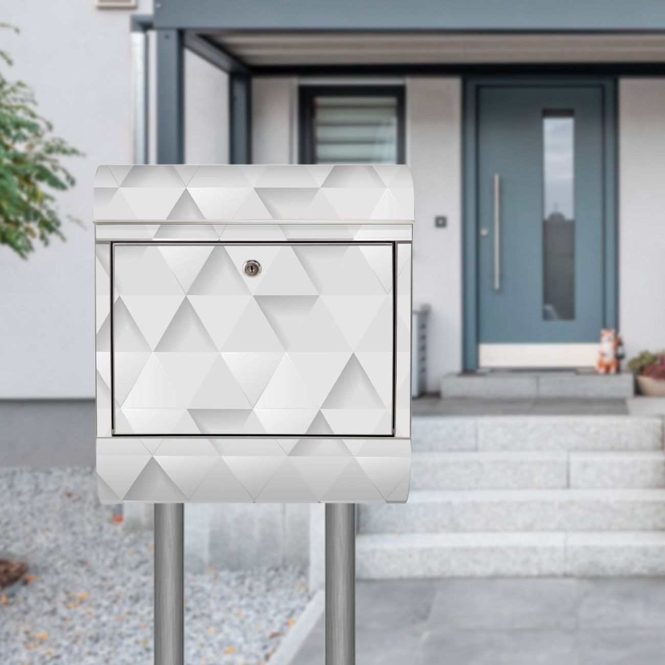 Standbriefkasten Edelstahl Weisse Dreiecke