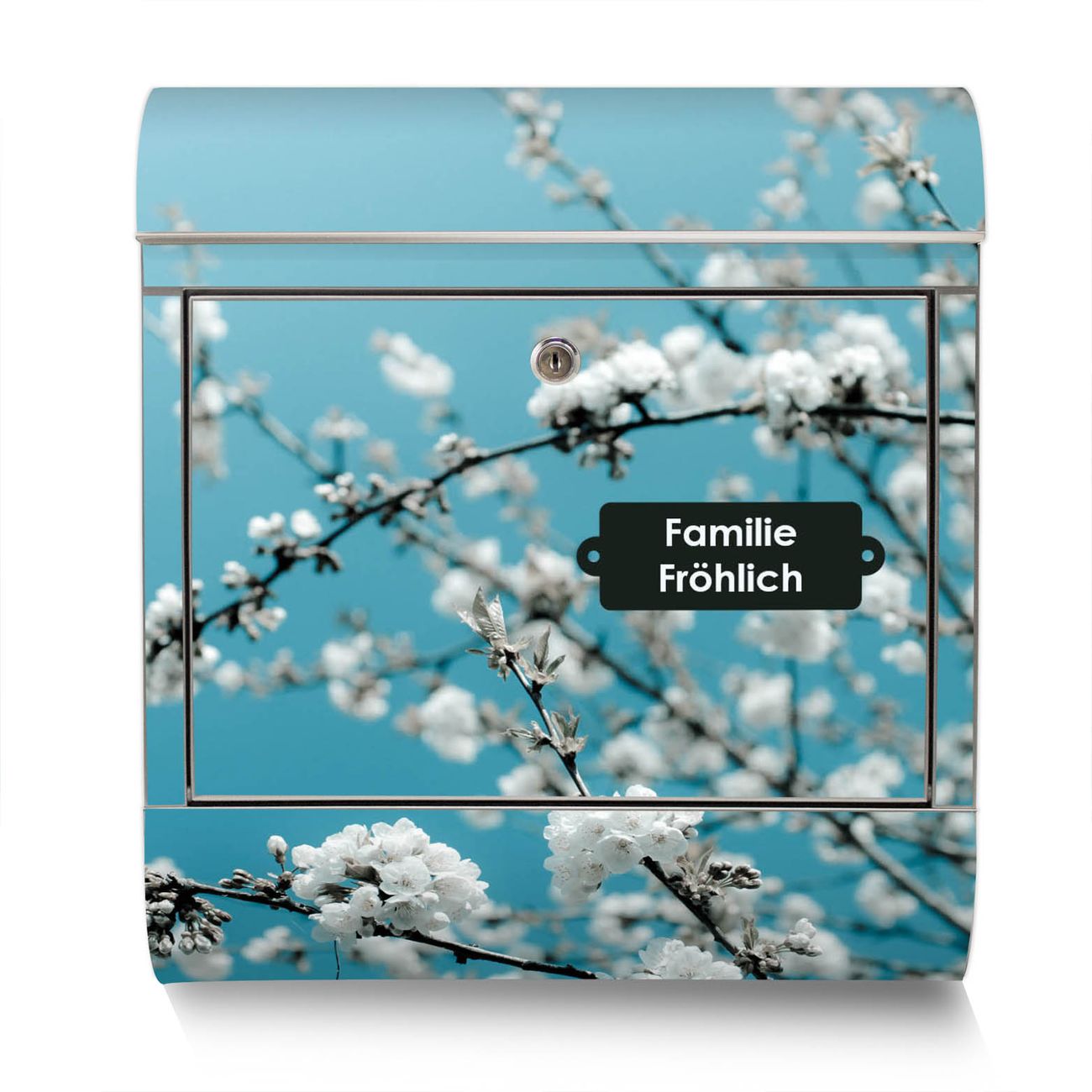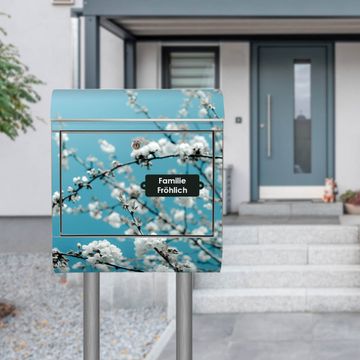 Standbriefkasten Edelstahl weiße Kirschblüten