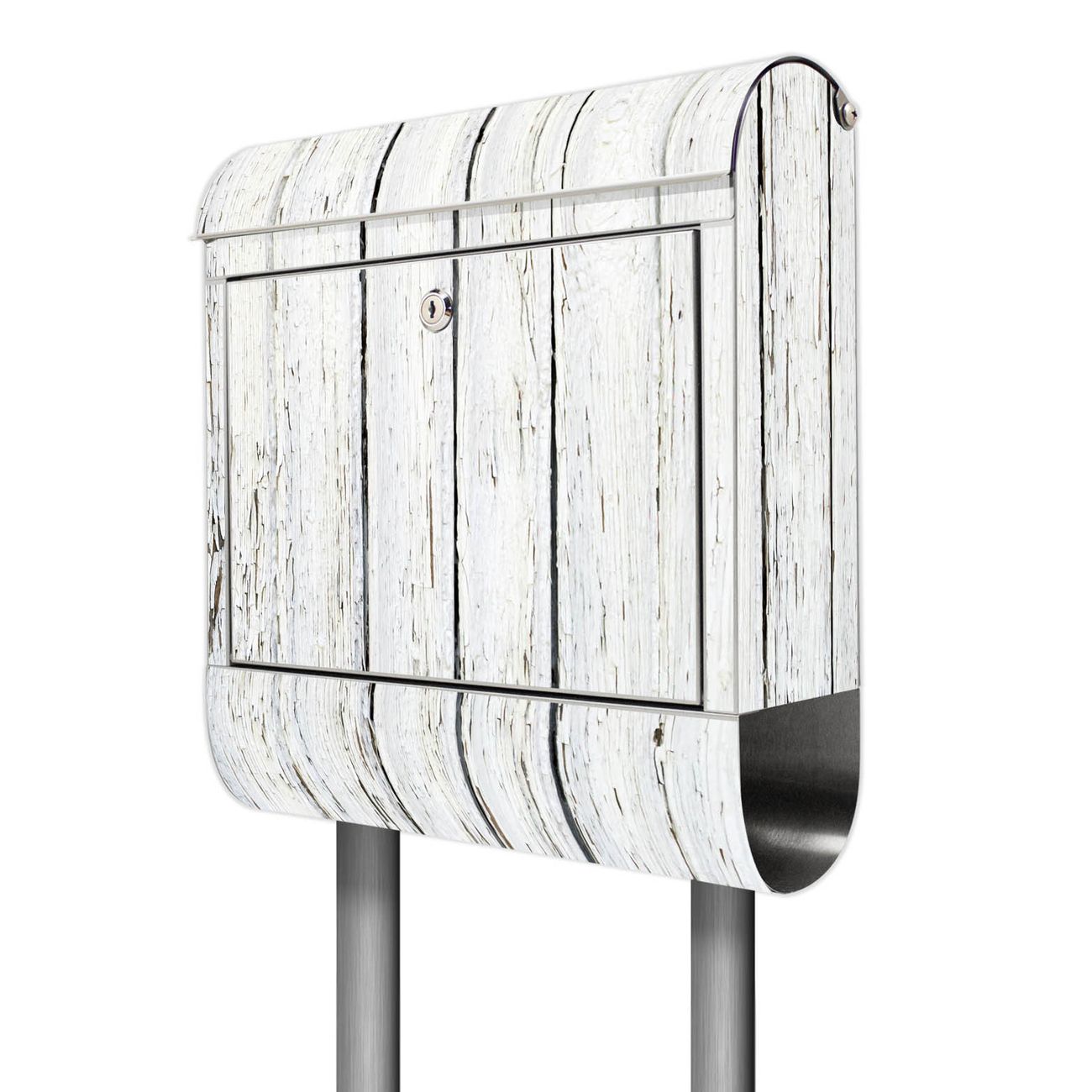 Standbriefkasten Edelstahl Weißer Bretterzaun