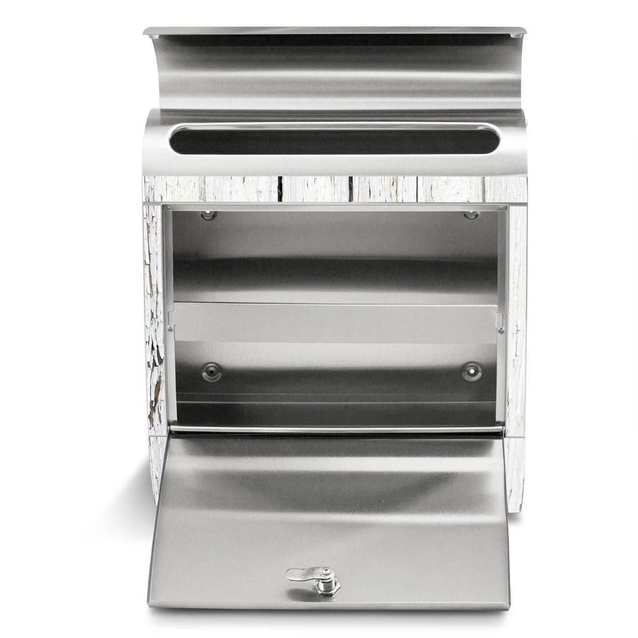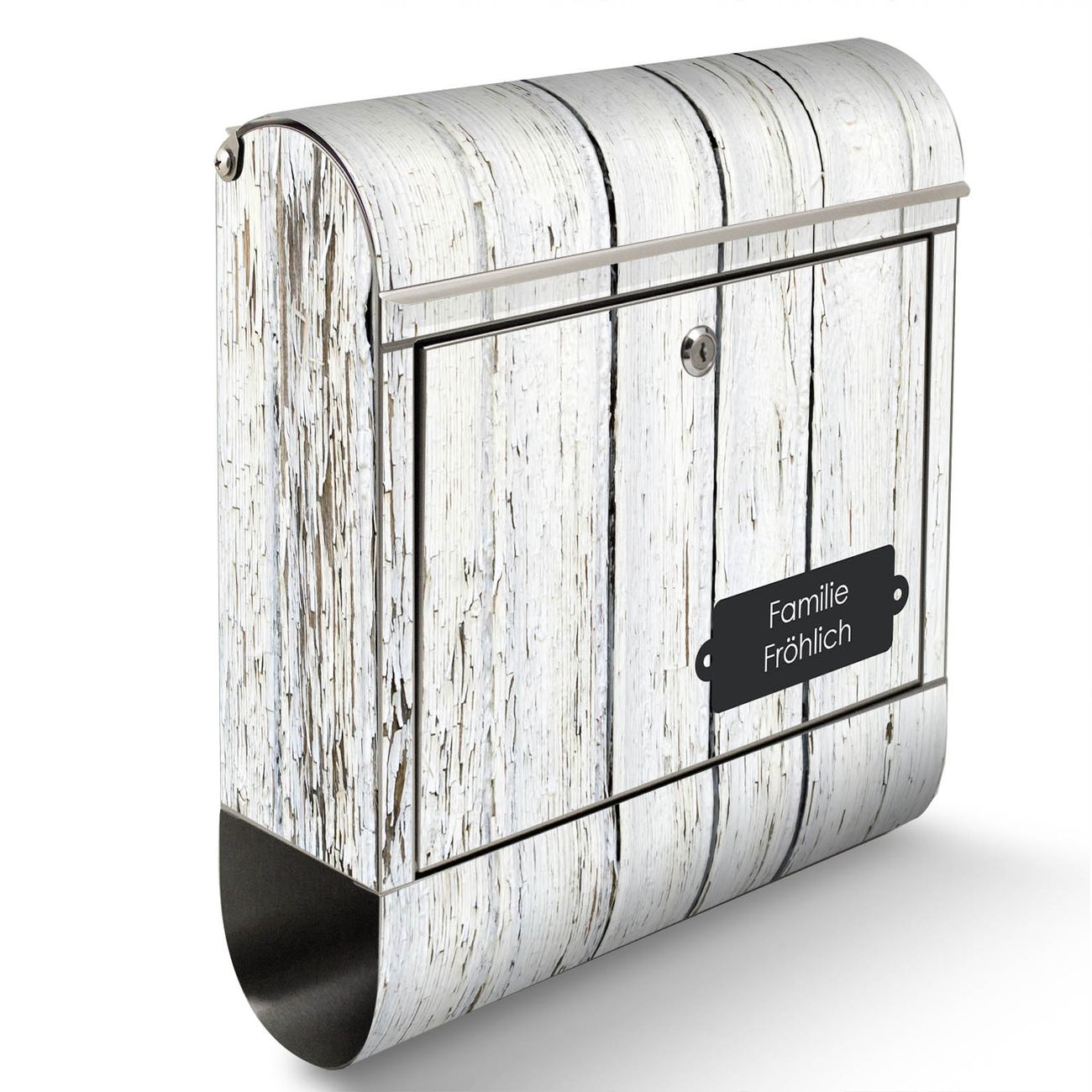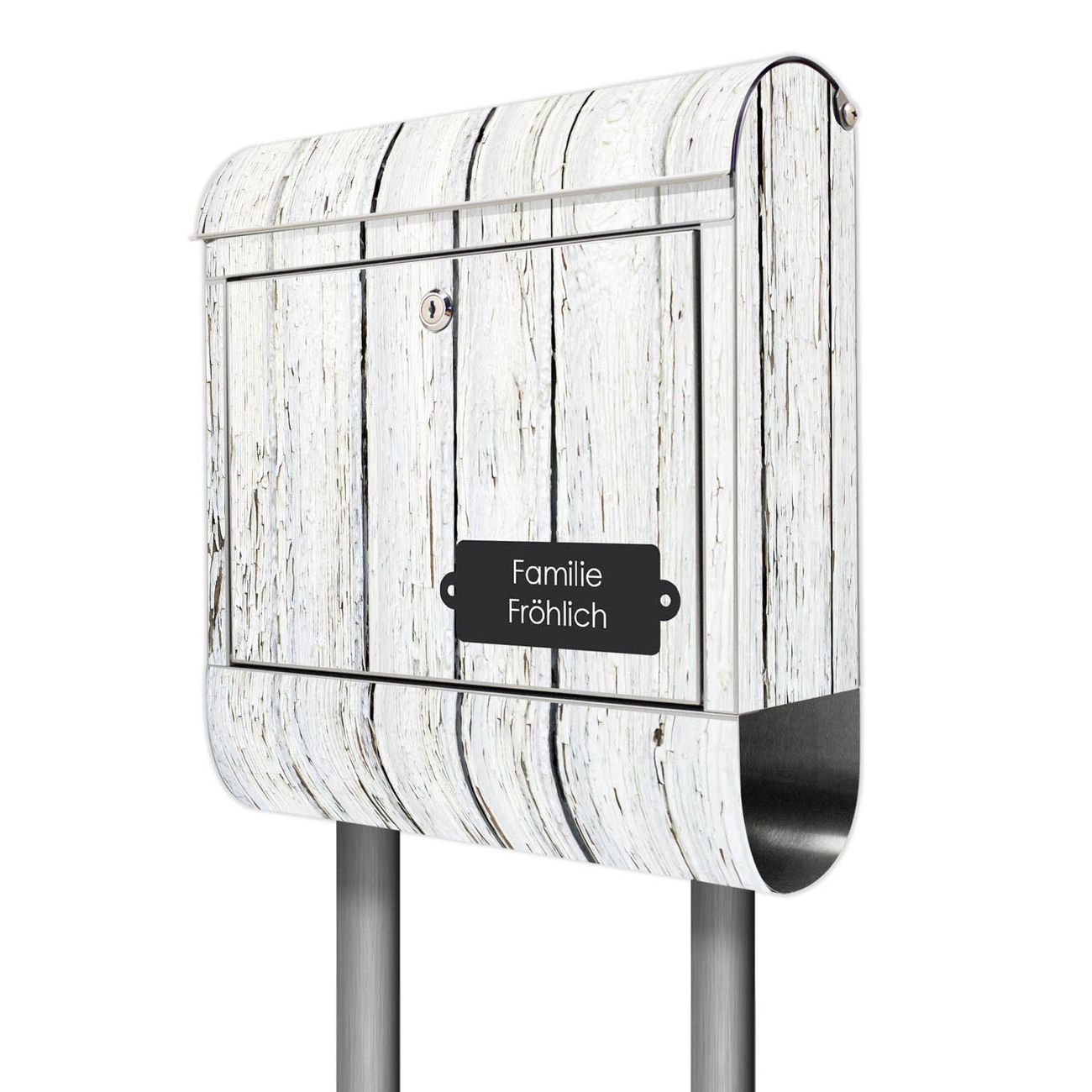 Standbriefkasten Edelstahl Weißer Bretterzaun