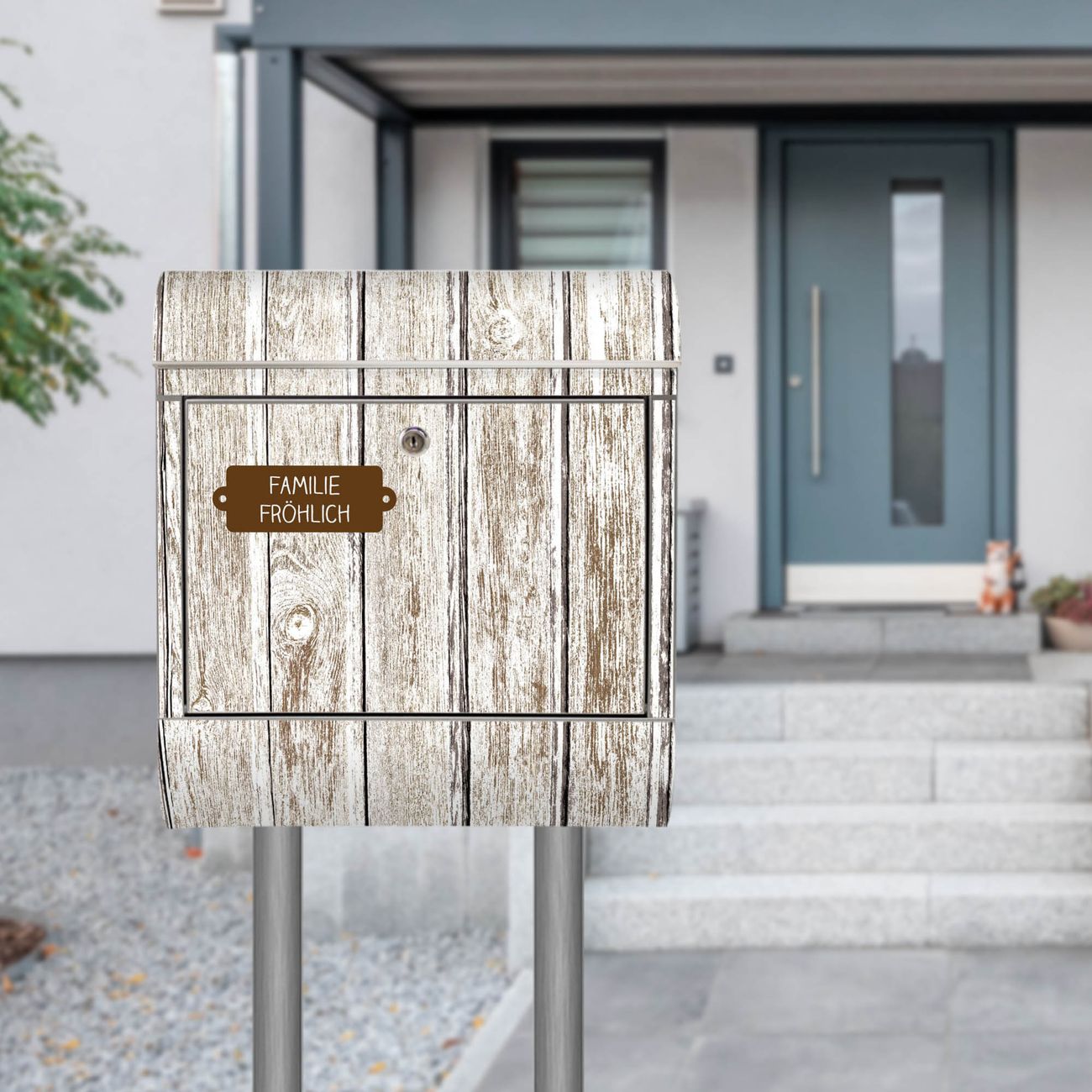Standbriefkasten Edelstahl Weißes Holz