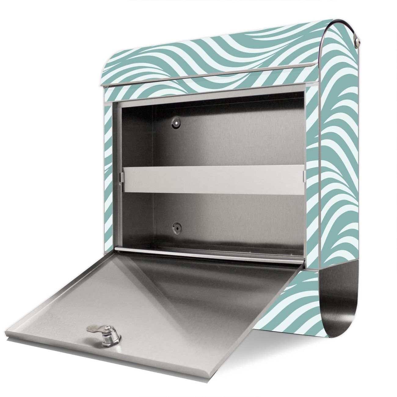 Der Motivstandbriefkasten hat ein sehr ansprechendes und ausgefallenes Design, damit entlocken Sie Ihren Nachbarn und dem Postboten ein Lächeln. Heben Sie Sich ab von der tristen grauen Masse, ohne auf Funktionalität zu verzichten. Der Briefkasten besteht aus hochwertigem 18/0 Edelstahl und die Wetter- und UV-resistenten Folie mit Wellen Lindgrün Motiv ist zusätzlich mit einem Schutzlaminat überzogen. Der Standbriefkasten wird mit Montagematerial und zwei Schlüsseln geliefert.