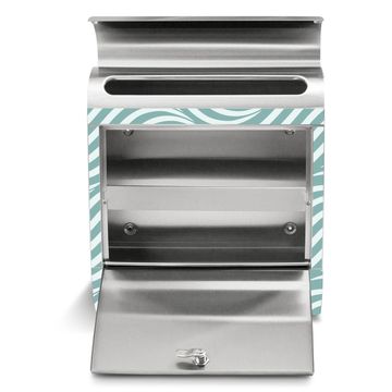 Der banjado Edelstahl Standbriefkasten mit Motiv Wellen Lindgrün und eigenem Wunschtext bietet Ihnen mit seinem Fassungsvermögen genügend Platz auch für große A4 Sendungen. Das integrierte Zeitungsfach eignet sich hervorragend, um unkompliziert die Tageszeitung zu fassen.