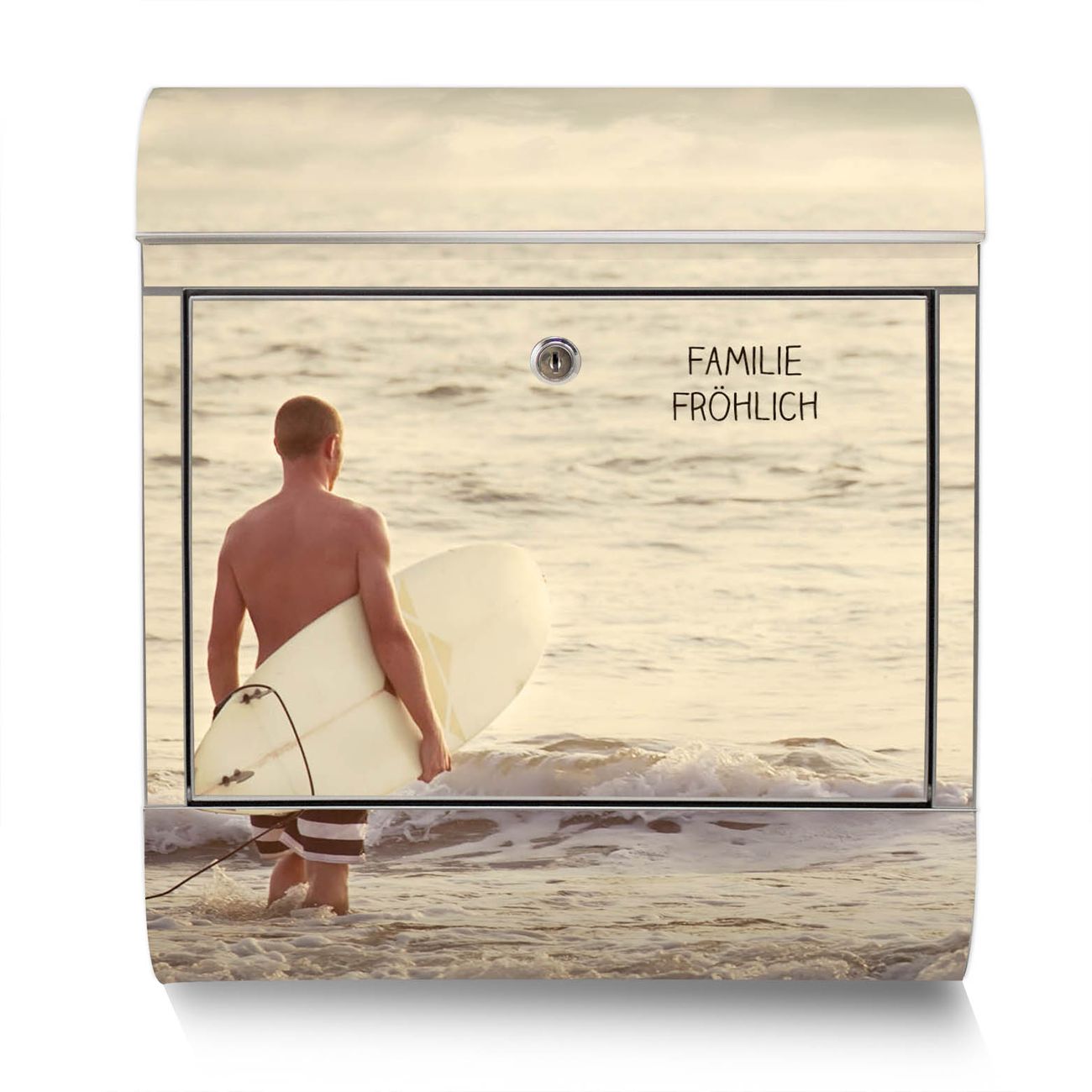 Der Motivstandbriefkasten hat ein sehr ansprechendes und ausgefallenes Design, damit entlocken Sie Ihren Nachbarn und dem Postboten ein Lächeln. Heben Sie Sich ab von der tristen grauen Masse, ohne auf Funktionalität zu verzichten. Der Briefkasten besteht aus hochwertigem 18/0 Edelstahl und die Wetter- und UV-resistenten Folie mit Wellenreiten Gehen 2 Motiv ist zusätzlich mit einem Schutzlaminat überzogen. Der Standbriefkasten wird mit Montagematerial und zwei Schlüsseln geliefert.