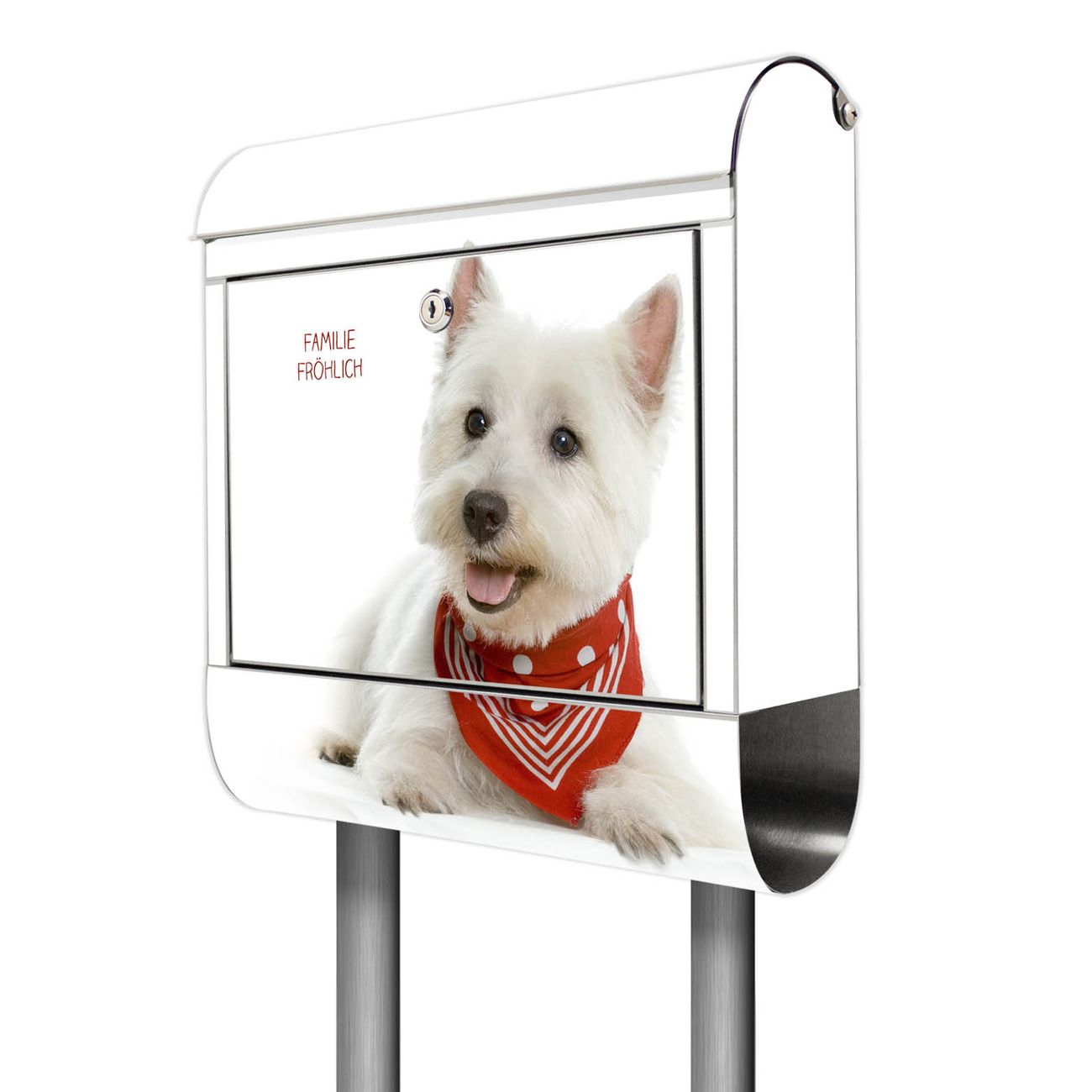 Der Motivstandbriefkasten hat ein sehr ansprechendes und ausgefallenes Design, damit entlocken Sie Ihren Nachbarn und dem Postboten ein Lächeln. Heben Sie Sich ab von der tristen grauen Masse, ohne auf Funktionalität zu verzichten. Der Briefkasten besteht aus hochwertigem 18/0 Edelstahl und die Wetter- und UV-resistenten Folie mit Westie Motiv ist zusätzlich mit einem Schutzlaminat überzogen. Der Standbriefkasten wird mit Montagematerial und zwei Schlüsseln geliefert.