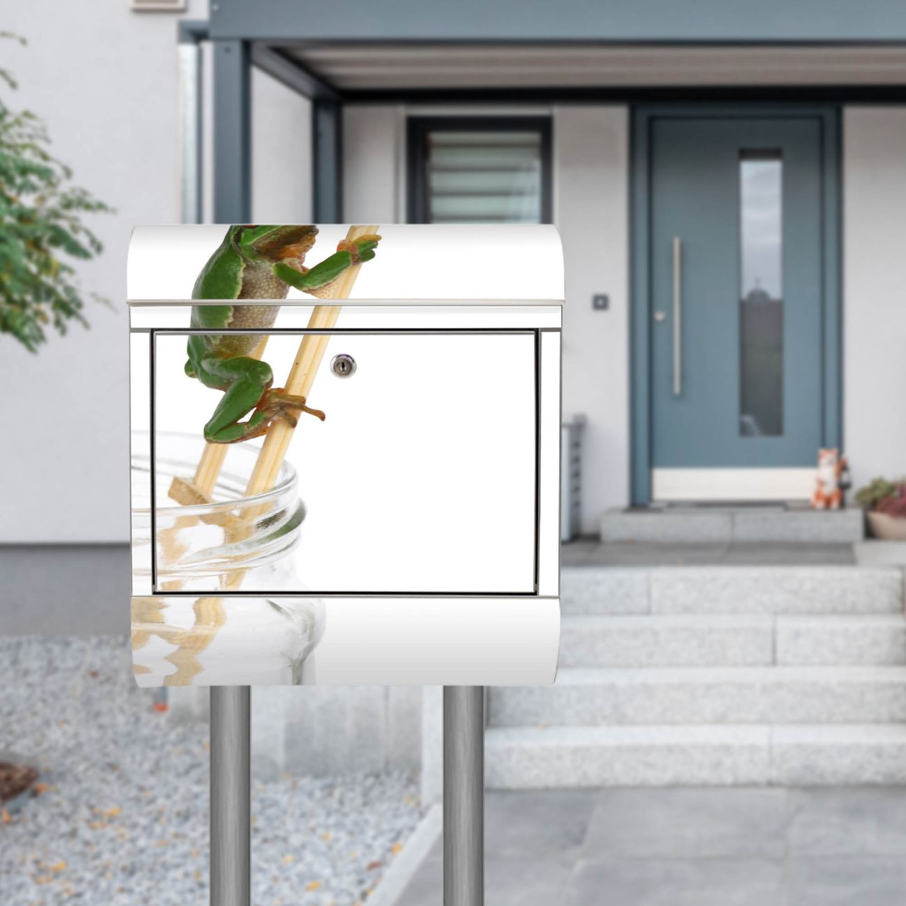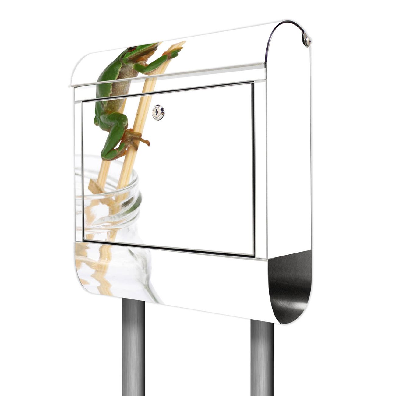 Der Motivstandbriefkasten hat ein sehr ansprechendes und ausgefallenes Design, damit entlocken Sie Ihren Nachbarn und dem Postboten ein Lächeln. Heben Sie Sich ab von der tristen grauen Masse, ohne auf Funktionalität zu verzichten. Der Briefkasten besteht aus hochwertigem 18/0 Edelstahl und die Wetter- und UV-resistenten Folie mit Wetterfrosch Motiv ist zusätzlich mit einem Schutzlaminat überzogen. Der Standbriefkasten wird mit Montagematerial und zwei Schlüsseln geliefert.