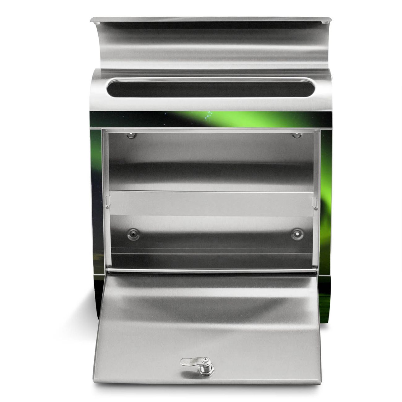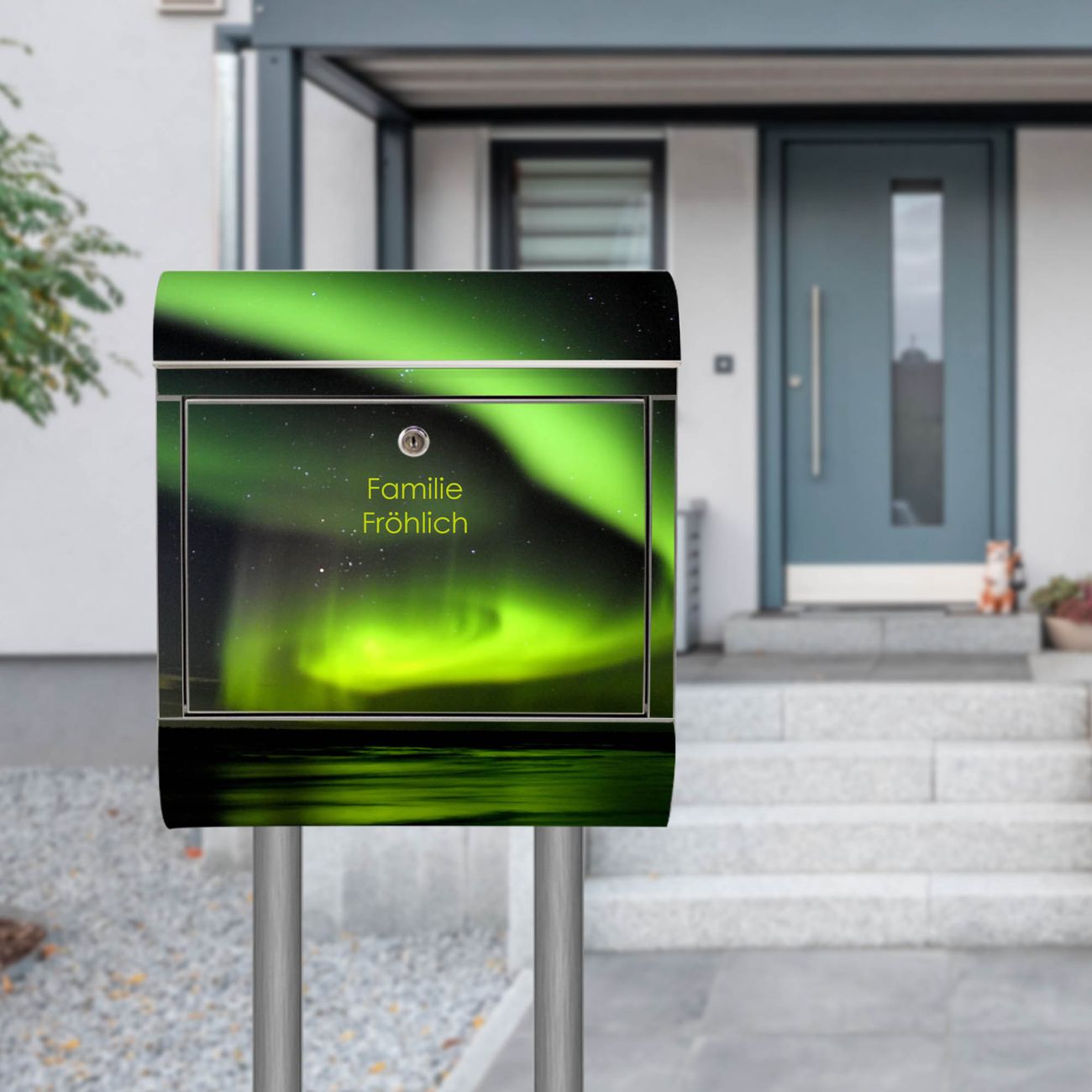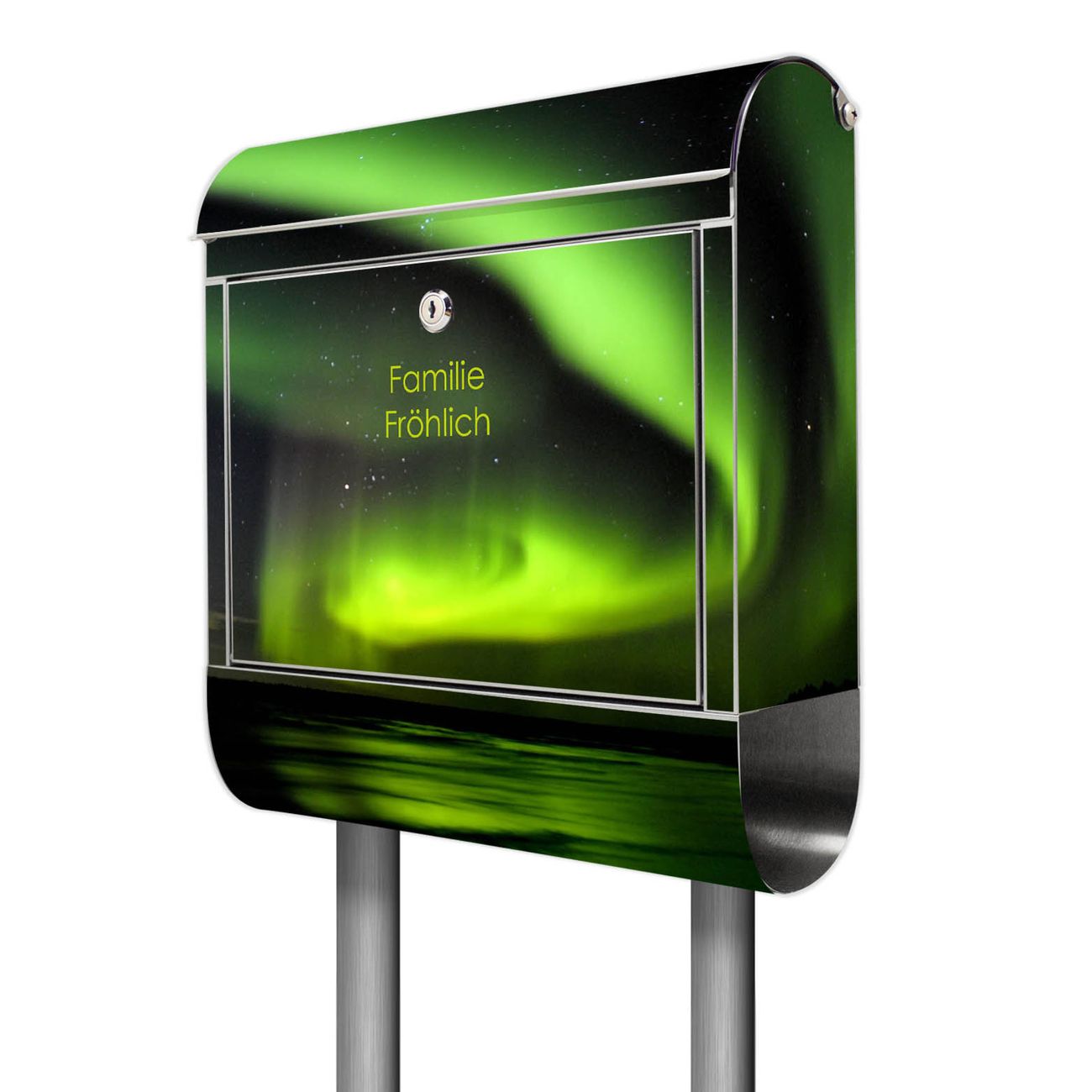 Der Motivstandbriefkasten hat ein sehr ansprechendes und ausgefallenes Design, damit entlocken Sie Ihren Nachbarn und dem Postboten ein Lächeln. Heben Sie Sich ab von der tristen grauen Masse, ohne auf Funktionalität zu verzichten. Der Briefkasten besteht aus hochwertigem 18/0 Edelstahl und die Wetter- und UV-resistenten Folie mit Wetterleuchten Motiv ist zusätzlich mit einem Schutzlaminat überzogen. Der Standbriefkasten wird mit Montagematerial und zwei Schlüsseln geliefert.