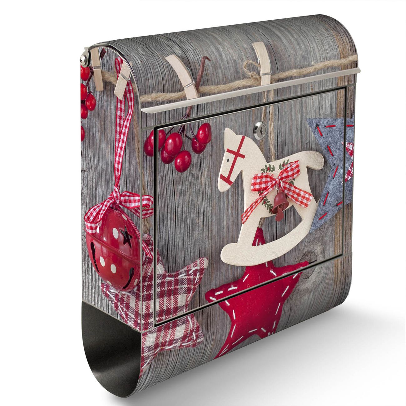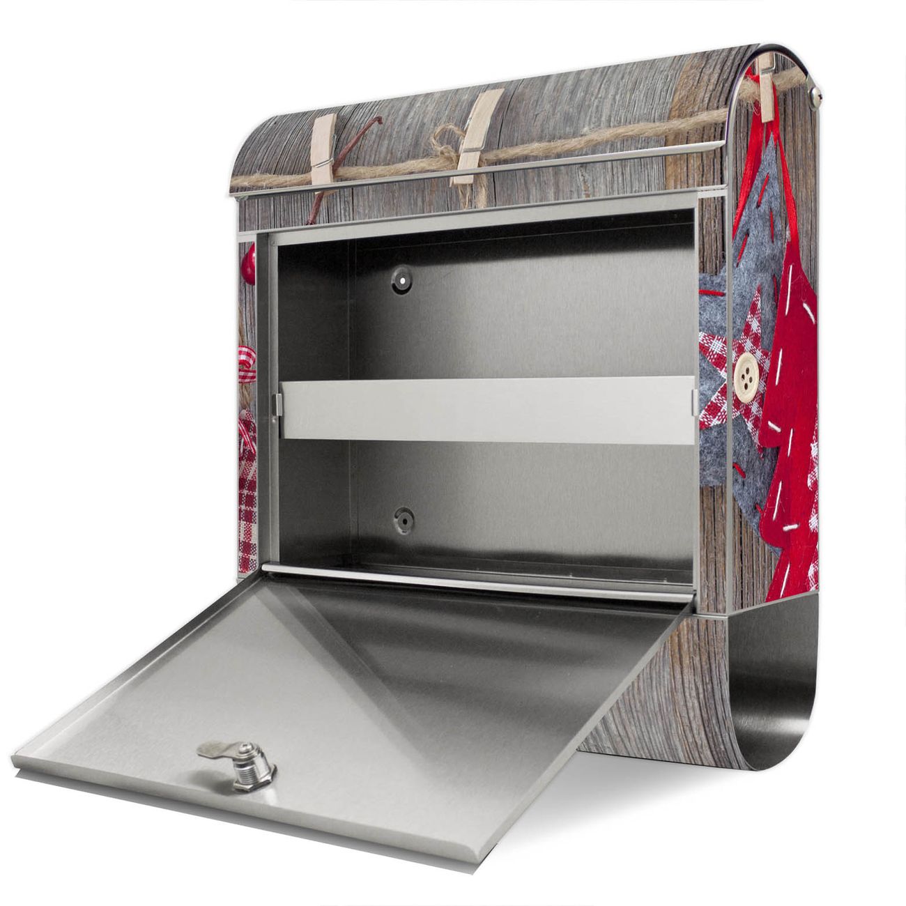Der Motivstandbriefkasten hat ein sehr ansprechendes und ausgefallenes Design, damit entlocken Sie Ihren Nachbarn und dem Postboten ein Lächeln. Heben Sie Sich ab von der tristen grauen Masse, ohne auf Funktionalität zu verzichten. Der Briefkasten besteht aus hochwertigem 18/0 Edelstahl und die Wetter- und UV-resistenten Folie mit Winterdekoration Motiv ist zusätzlich mit einem Schutzlaminat überzogen. Der Standbriefkasten wird mit Montagematerial und zwei Schlüsseln geliefert.