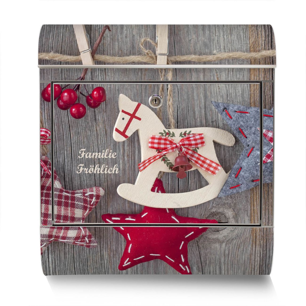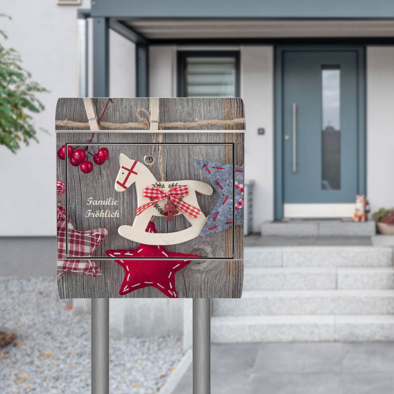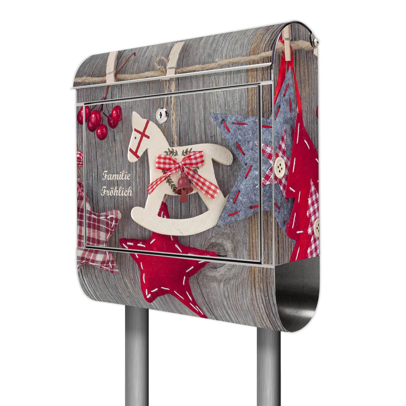Der banjado Edelstahl Standbriefkasten mit Motiv Winterdekoration und eigenem Wunschtext bietet Ihnen mit seinem Fassungsvermögen genügend Platz auch für große A4 Sendungen. Das integrierte Zeitungsfach eignet sich hervorragend, um unkompliziert die Tageszeitung zu fassen.