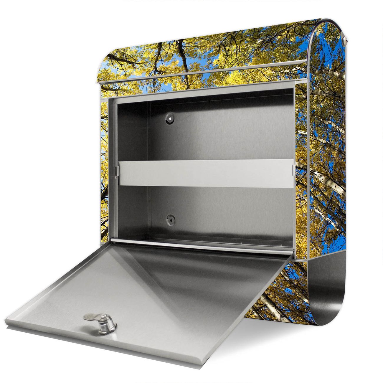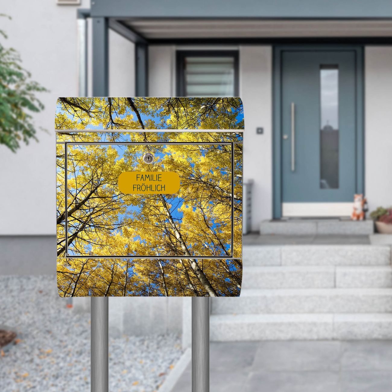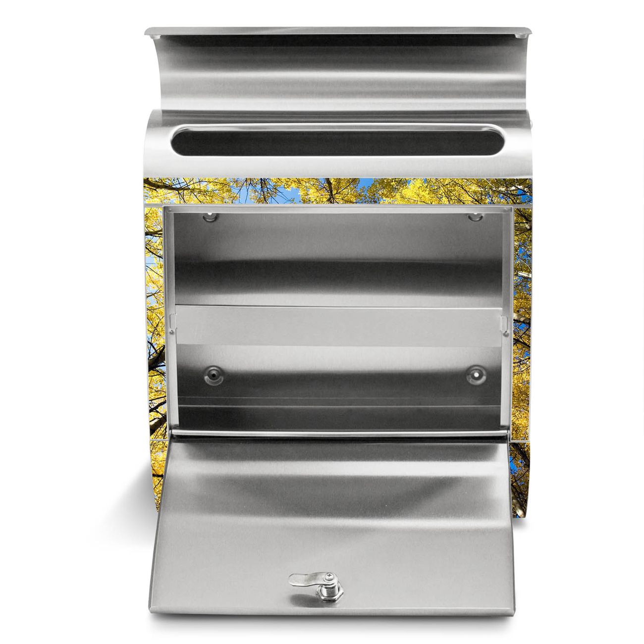 Der Motivstandbriefkasten hat ein sehr ansprechendes und ausgefallenes Design, damit entlocken Sie Ihren Nachbarn und dem Postboten ein Lächeln. Heben Sie Sich ab von der tristen grauen Masse, ohne auf Funktionalität zu verzichten. Der Briefkasten besteht aus hochwertigem 18/0 Edelstahl und die Wetter- und UV-resistenten Folie mit Wipfel Motiv ist zusätzlich mit einem Schutzlaminat überzogen. Der Standbriefkasten wird mit Montagematerial und zwei Schlüsseln geliefert.